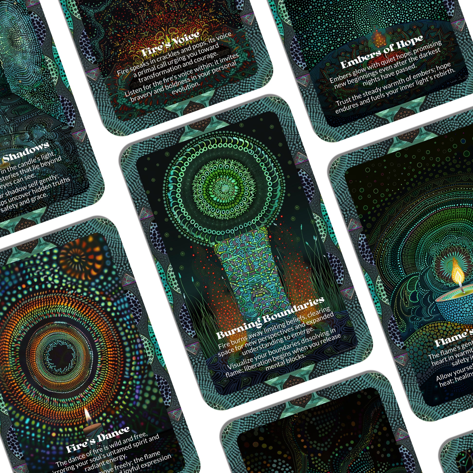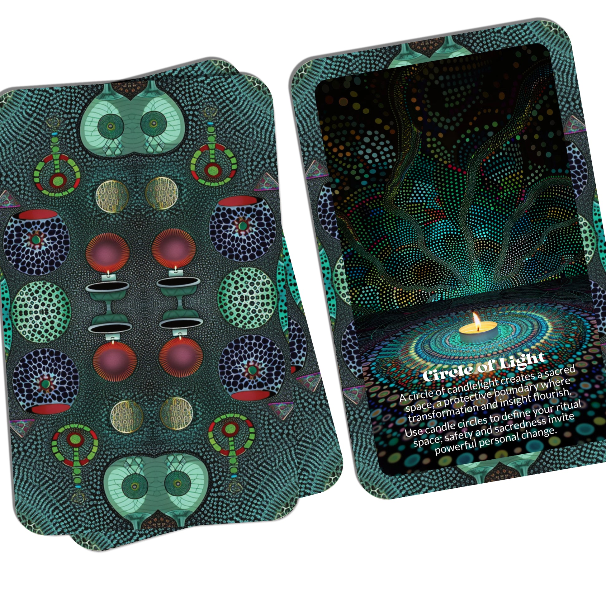 “Candle Language – Fire Rituals & Insight” - Candle Language invites you to explore the magic of fire and the profound insights that can emerge through flame rituals. The flicker of a candle’s flame holds deep symbolic meaning and can illuminate the path to clarity and understanding. This card encourages you to incorporate fire rituals into your spiritual practices to help release, manifest, or transform energy. The flames of a candle serve as a medium through which you can connect with your inner wisdom, channelling messages from the divine. Candle Language suggests that you engage with fire as a tool for purification and insight, allowing its transformative energy to guide you. Through ritual and intention, the fire will reveal the answers you seek.
