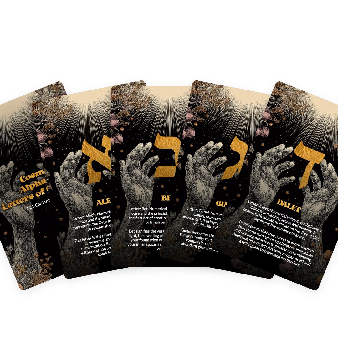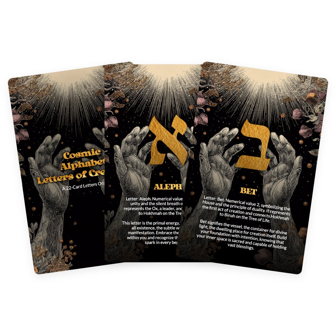 Unveil ancient wisdom with the Cosmic Alphabet: Letters of Creation, a profound 22-card deck rooted in sacred symbolism and esoteric tradition.