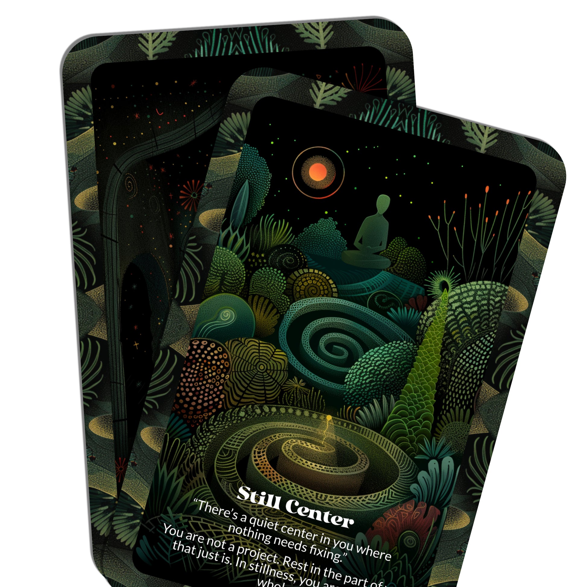 “Dust & Stillness – Meditation & Clarity” - Dust & Stillness represents the space where clarity is born from calmness and introspection. In moments of stillness, the dust of your thoughts and distractions settles, allowing the true essence of your being to rise to the surface. This card suggests that meditation, quiet moments, and reflection are essential for clearing mental clutter and finding clarity. When you embrace stillness, you open the space for deep insights and solutions that may have previously been clouded by noise. Just like dust falling to the ground, your awareness settles, revealing what is truly important. By connecting with the stillness, you allow yourself to see clearly and move forward with a renewed sense of purpose and understanding. In stillness, the answers often arrive quietly but powerfully.