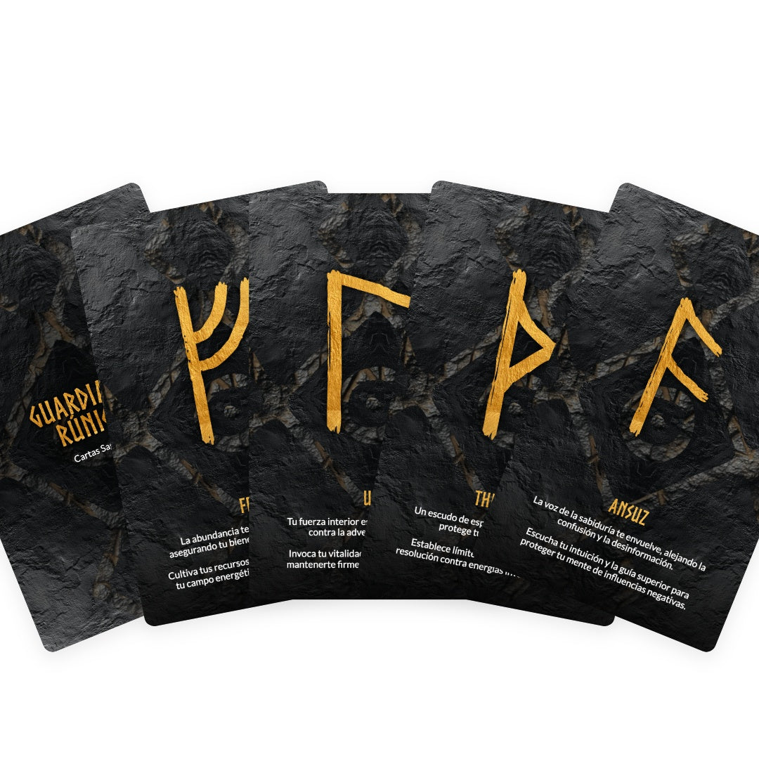 Explora la profundidad espiritual de las Runas con "Guardianes Rúnicos: Cartas Sagradas", una baraja exclusiva de 25 cartas diseñadas para canalizar la energía protectora y ancestral de estas inscripciones milenarias.
