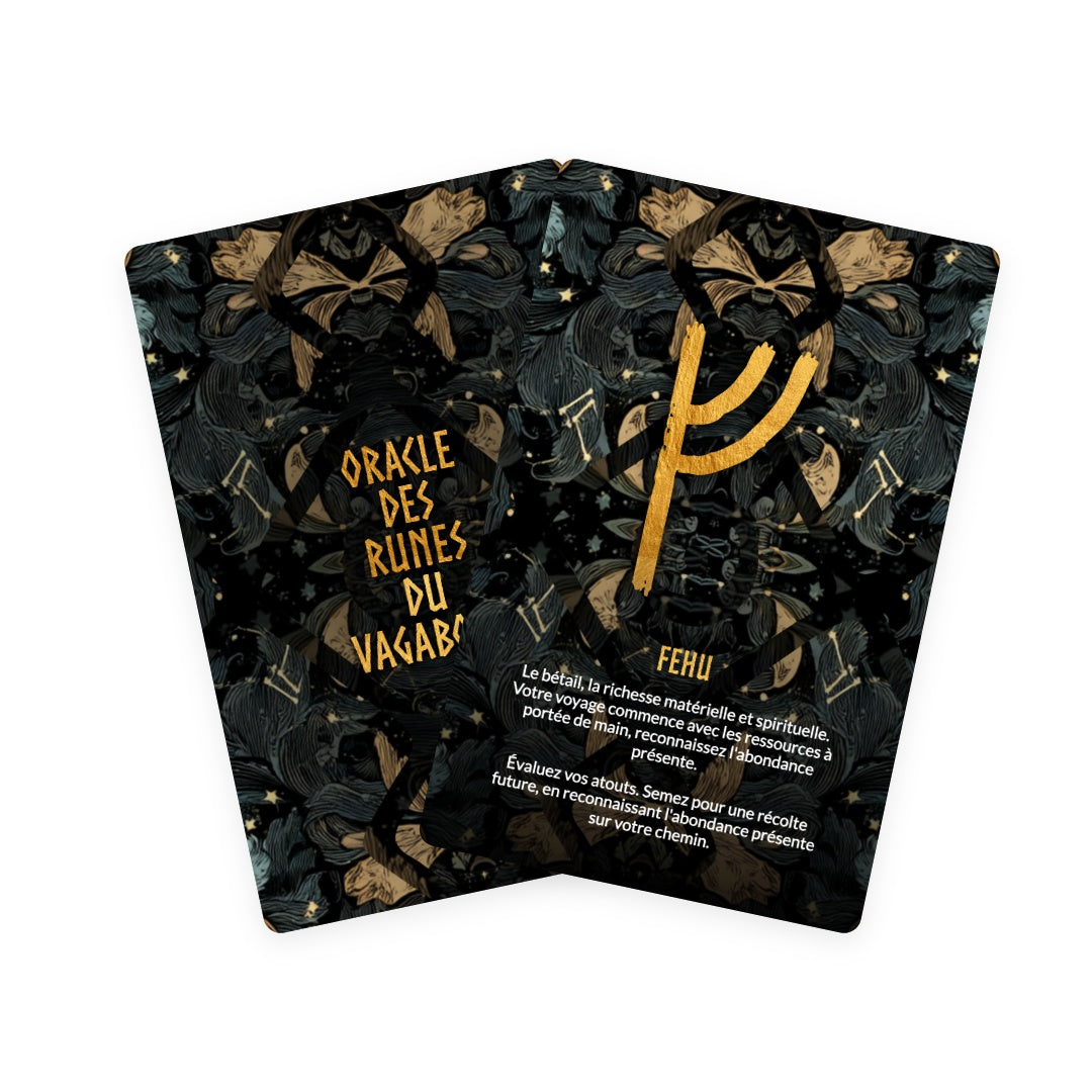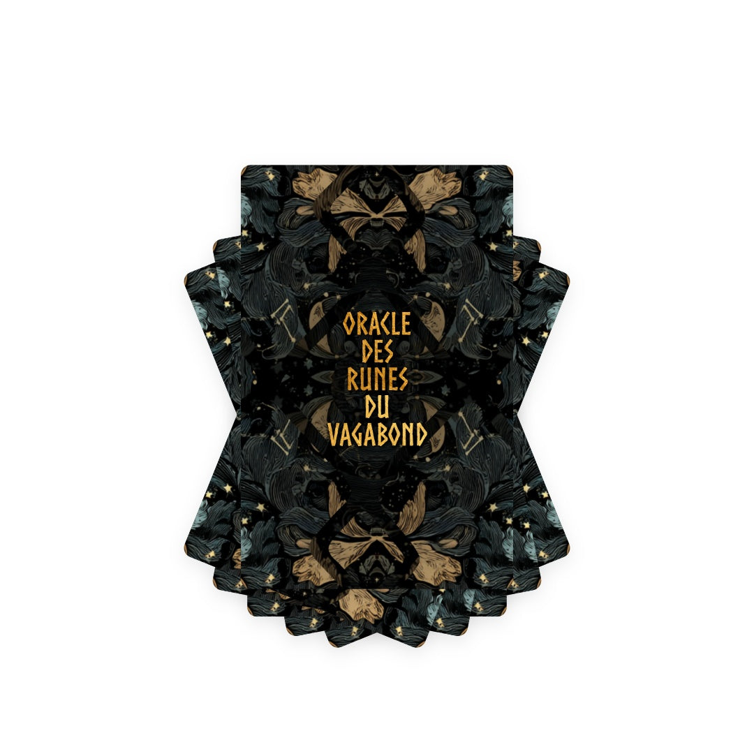 L'Oracle des Runes du Vagabond est un jeu de 25 cartes conçu pour vous accompagner dans une exploration intime et profonde des mystères ancestraux qui façonnent votre destinée. Chaque carte agit comme une boussole spirituelle, guidant votre voyage intérieur vers la découverte de soi, l’illumination et la compréhension des forces invisibles qui influencent votre parcours.