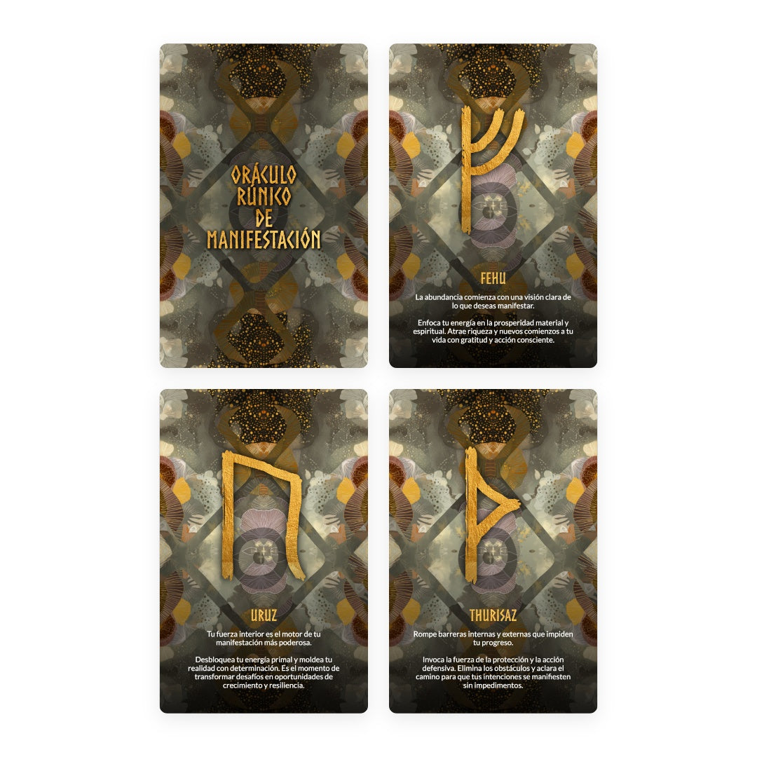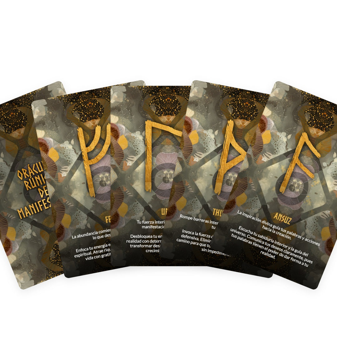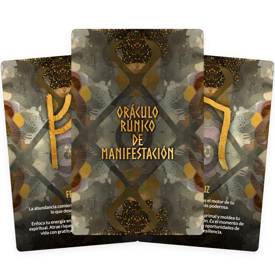 El Oráculo Rúnico de Manifestación es un mazo exclusivo de 25 cartas que te acompaña en el camino de la manifestación consciente, fusionando sabiduría ancestral con técnicas modernas.