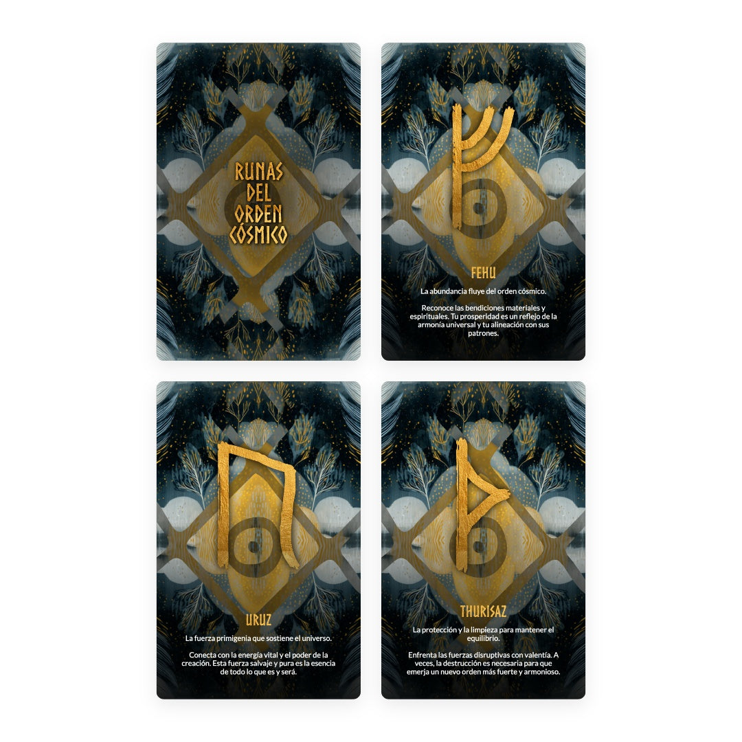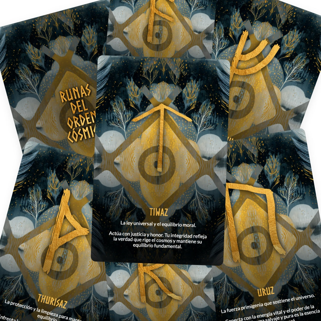 Esta baraja exclusiva de 25 cartas, llamada Runas del Orden Cósmico, ha sido cuidadosamente diseñada para explorar y revelar los secretos ancestrales del universo. Cada runa representa un fragmento único de sabiduría cósmica que conecta profundamente con la armonía y el equilibrio inherentes al orden universal.