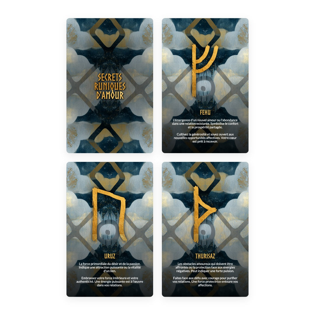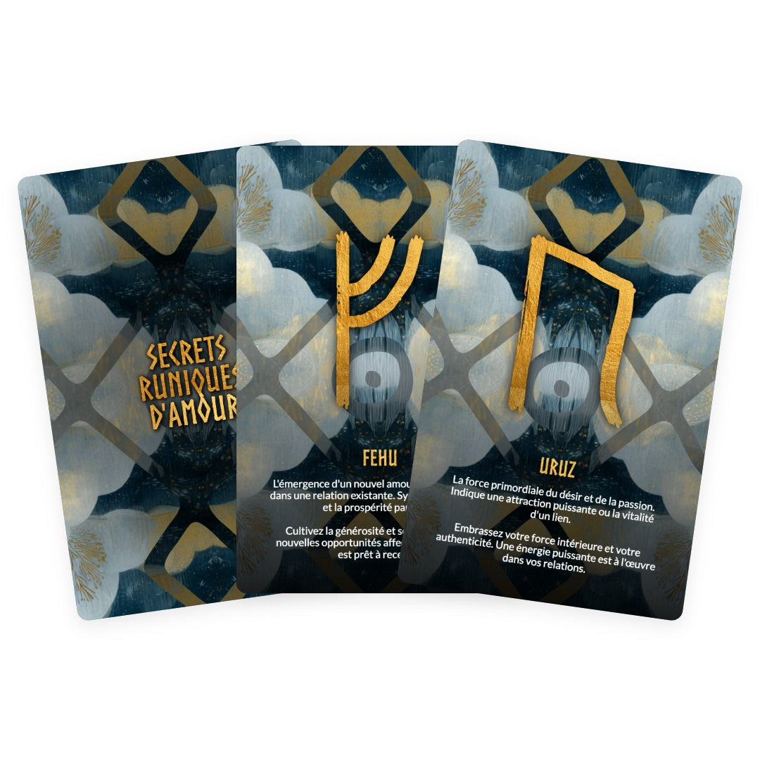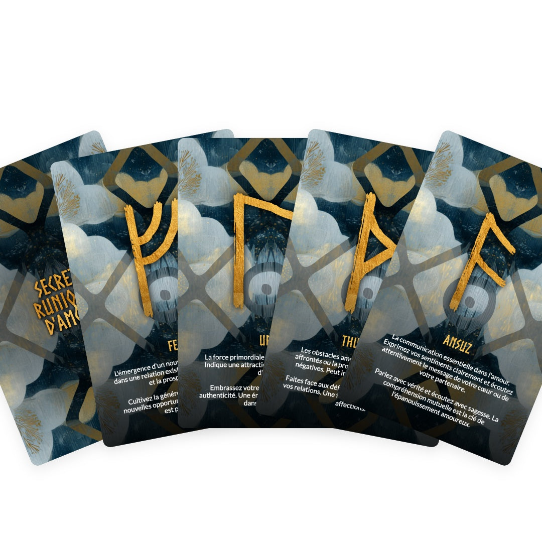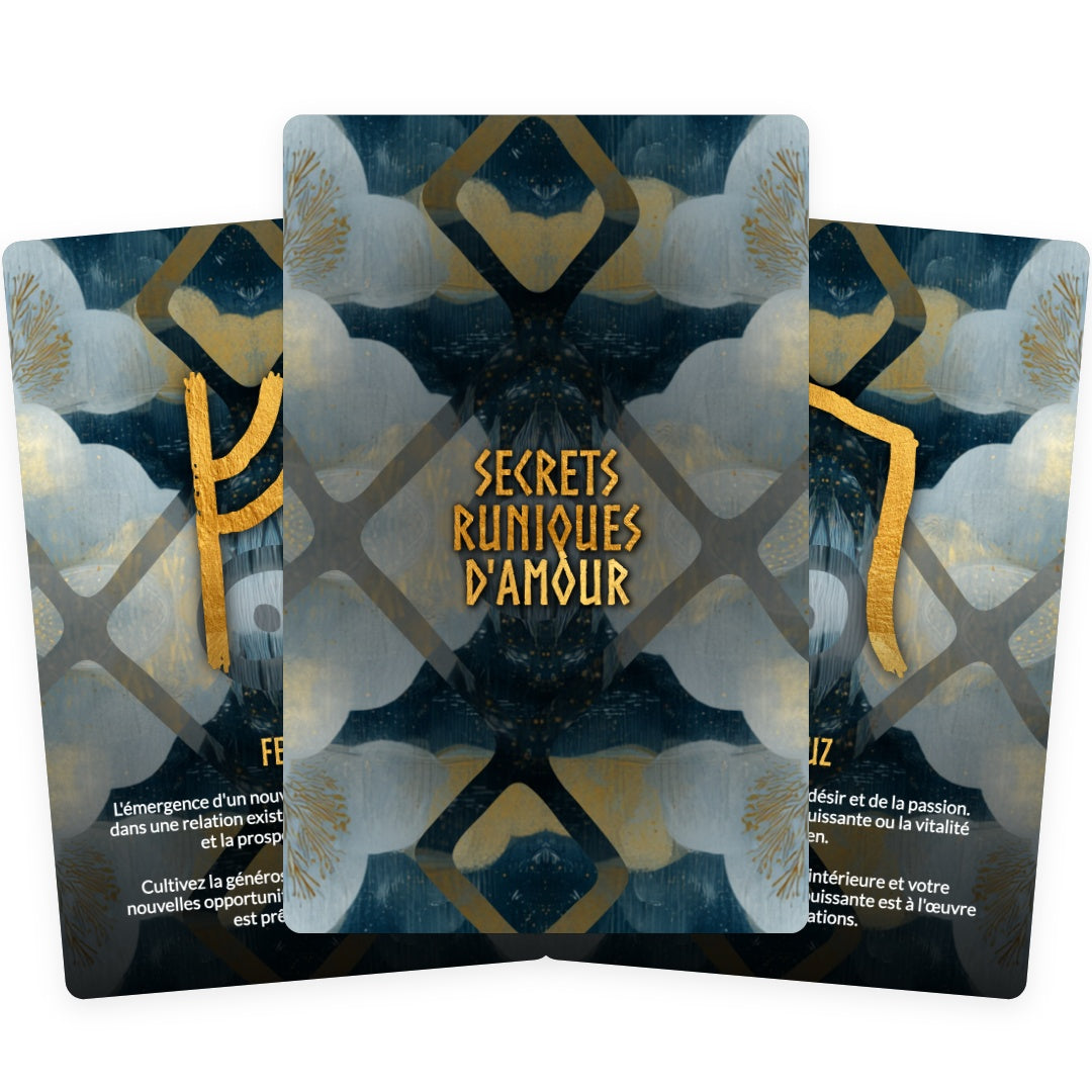 Secrets Runiques d'Amour est un jeu de 25 cartes conçu pour vous inviter à plonger au cœur des mystères affectifs et des dynamiques passionnelles. Chaque rune agit comme une clé puissante offrant des révélations profondes pour mieux comprendre vos relations, discerner les vérités émotionnelles et attirer l'amour authentique ou la passion intense que vous désirez.