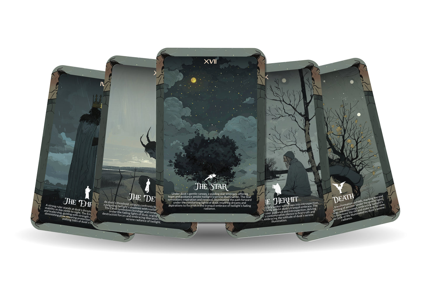 - Dusk Symbolism: Each card captures the essence of twilight and dawn, resonating with themes of transition, mystery, and change.