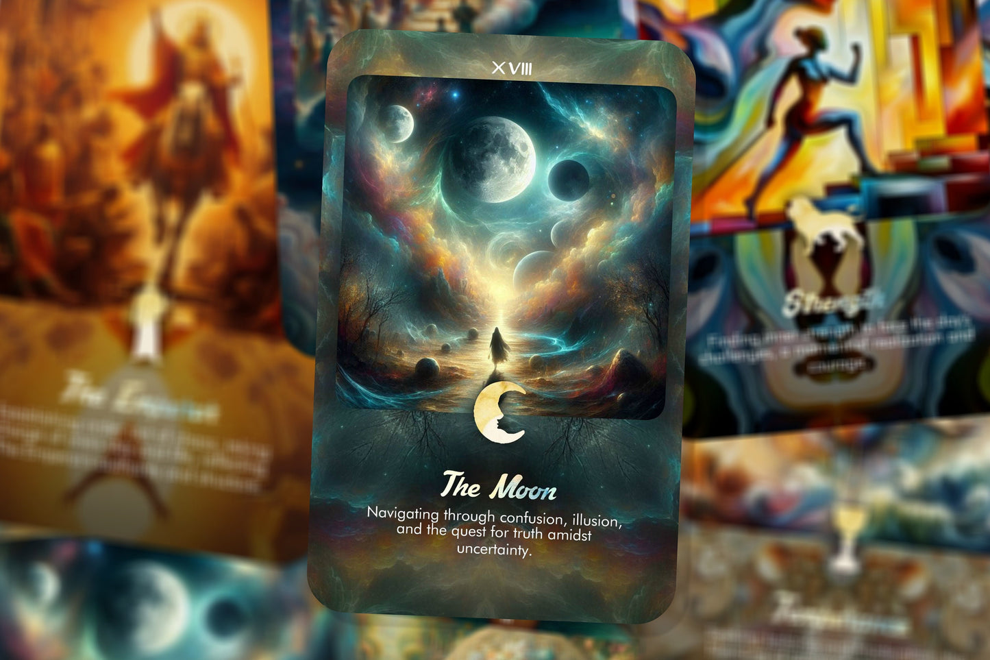 Each card, from The Fool to The World, is depicted in vibrant, life-affirming colors and styles, drawing from a wide range of artistic influences to create a visually stunning and emotionally resonant experience. The characters and scenes are diverse and inclusive, reflecting the universal nature of the Tarot's journey through life.