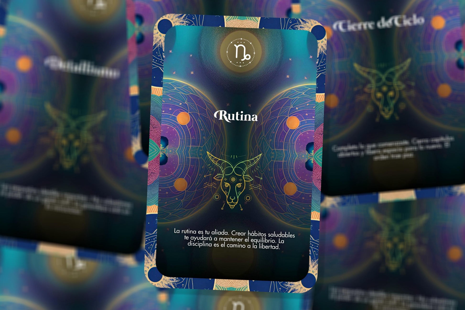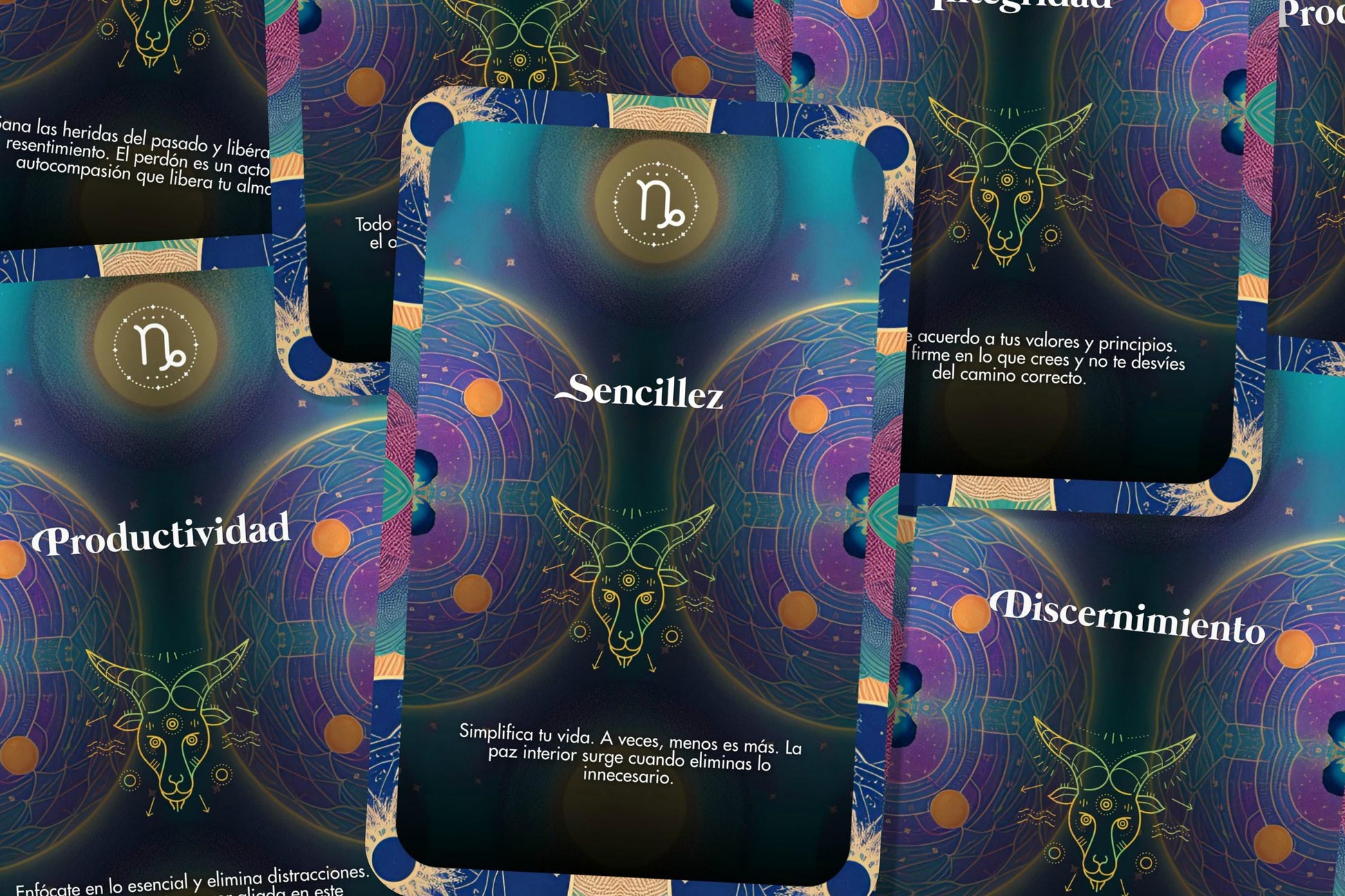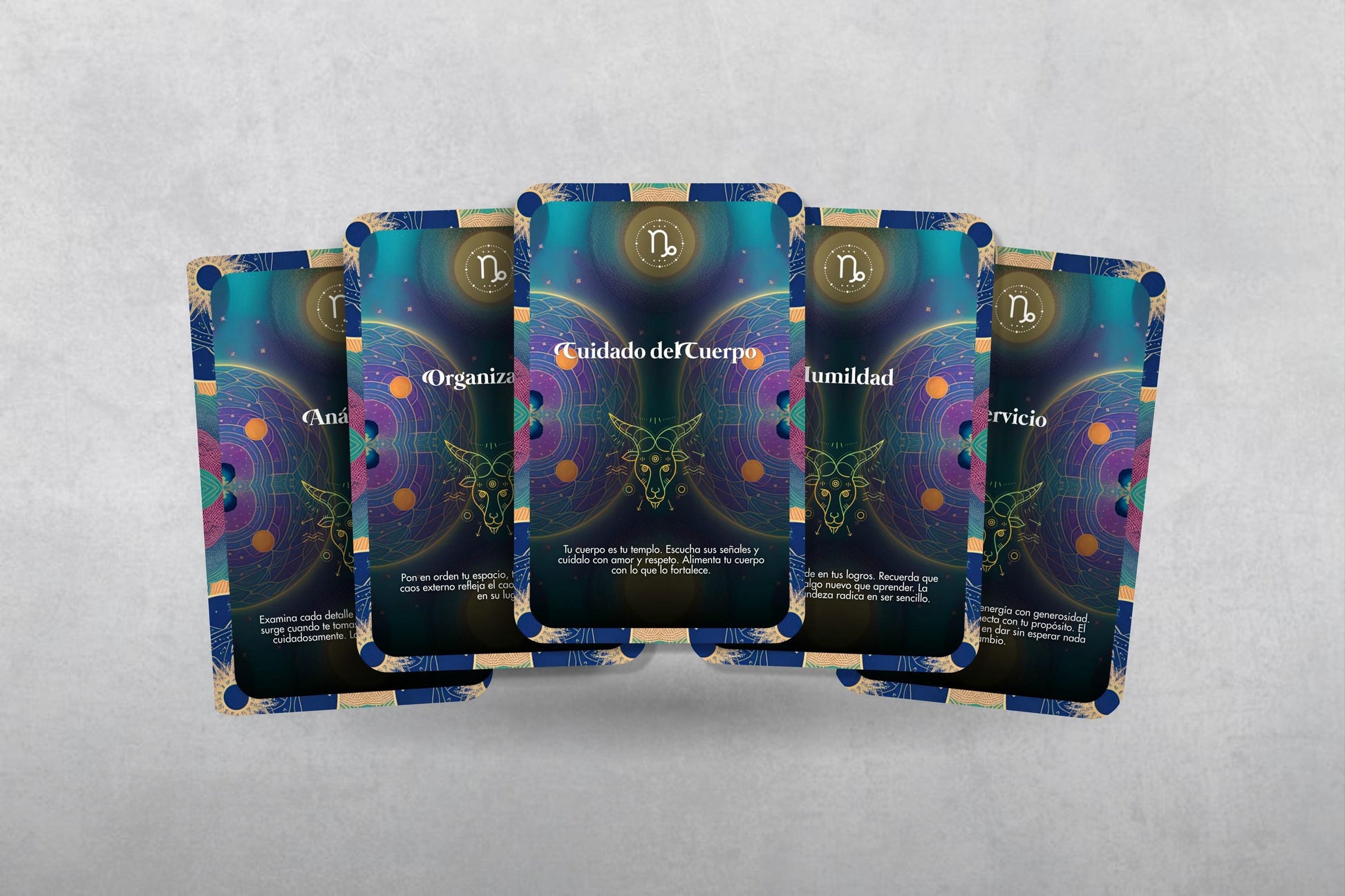 Cada carta presenta un título único y un mensaje personal que refleja los rasgos y fortalezas de Capricornio, como la determinación, la responsabilidad y la perseverancia.