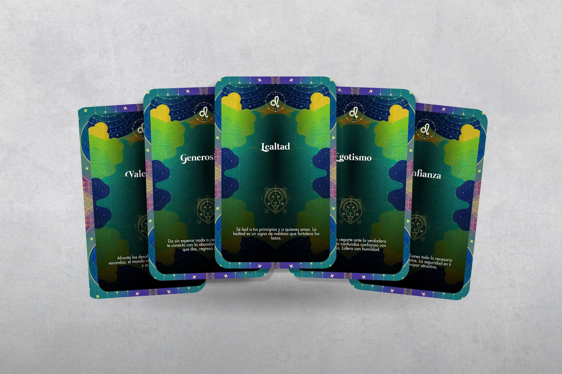 Cada carta presenta un título único y un mensaje personal que refleja los rasgos y fortalezas de Leo, como el liderazgo, la determinación y la creatividad.