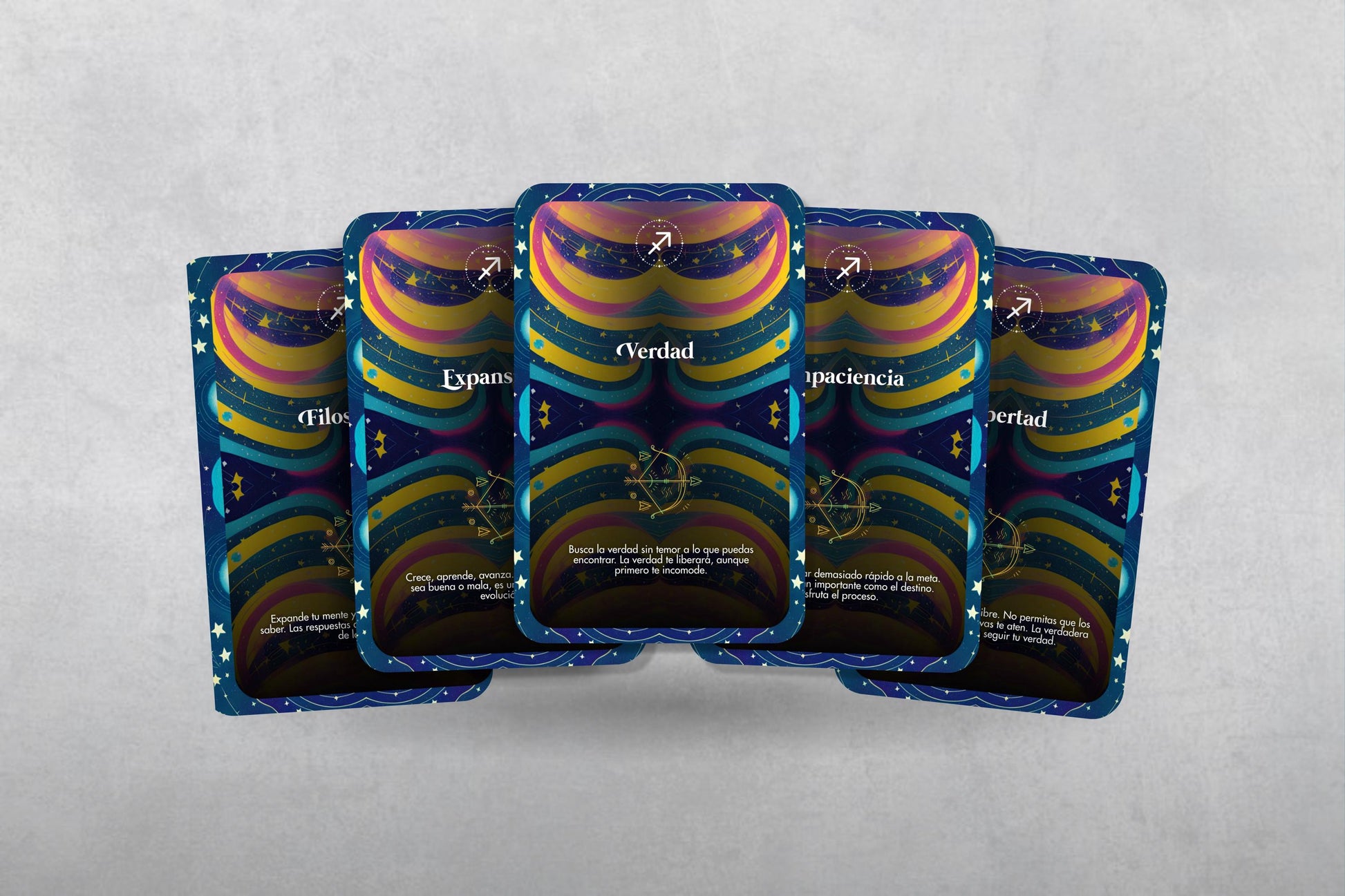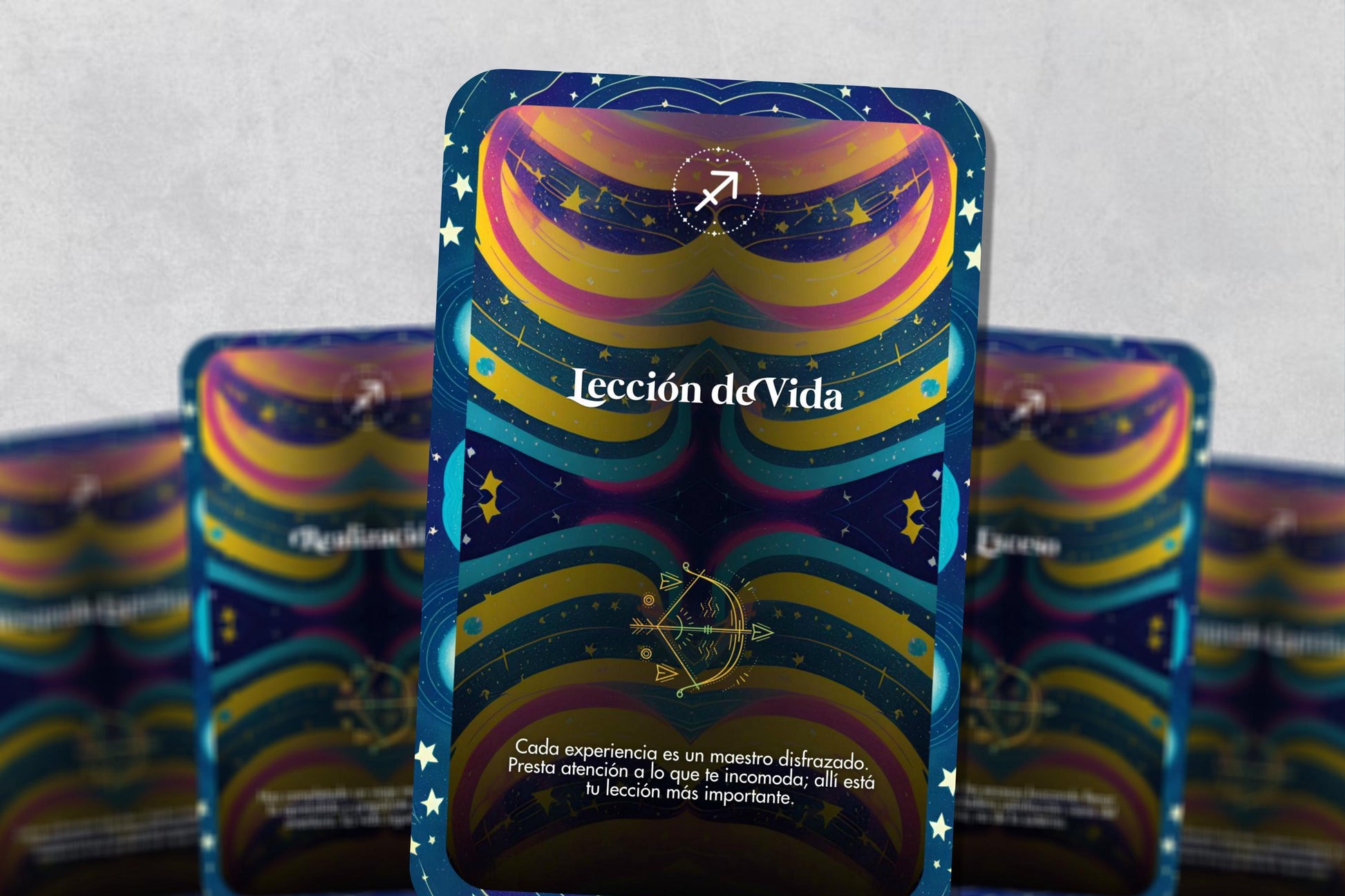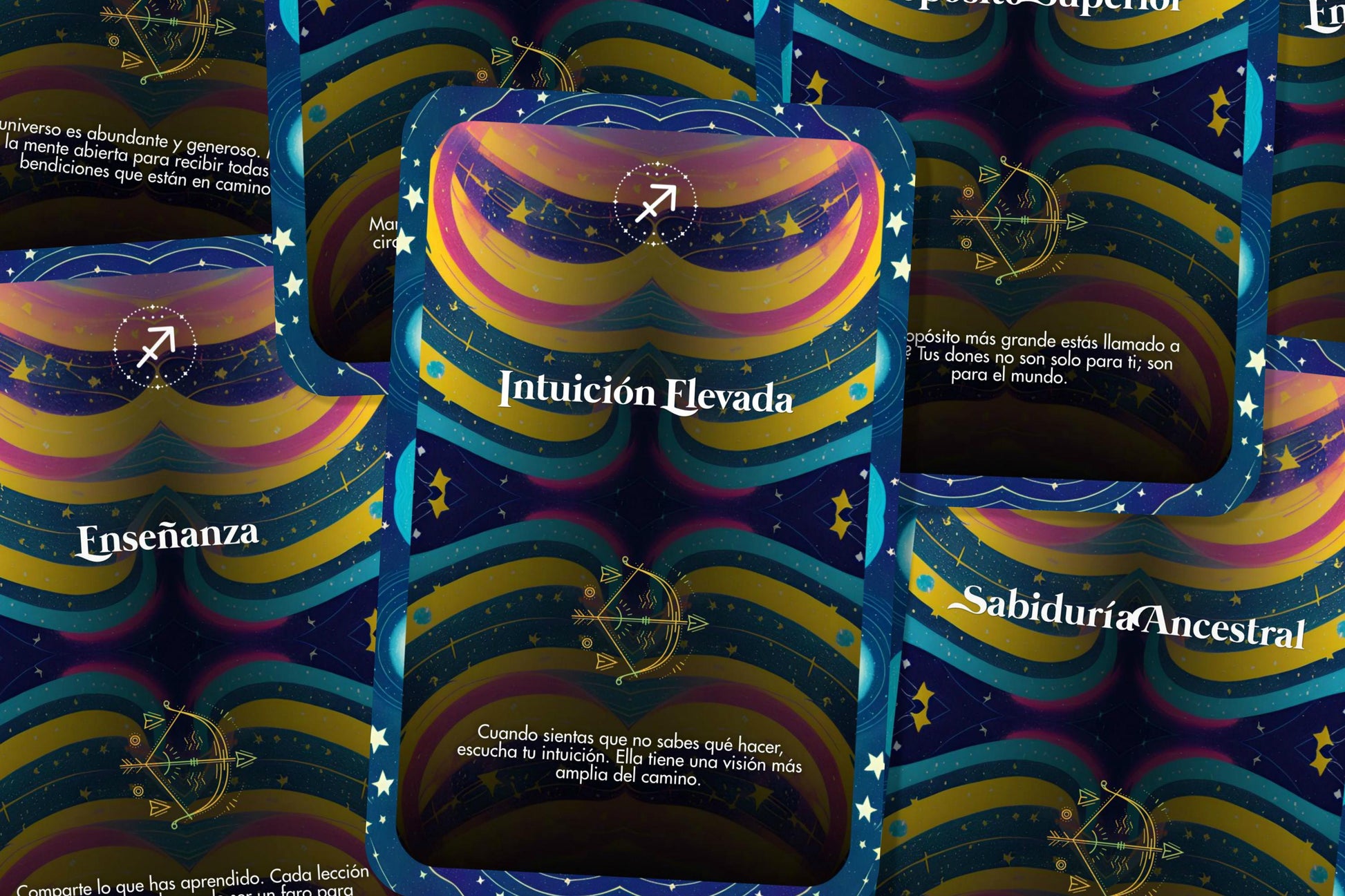 Cada carta presenta un título único y un mensaje personal que refleja los rasgos y fortalezas de Sagitario, como la curiosidad, la determinación y la independencia.