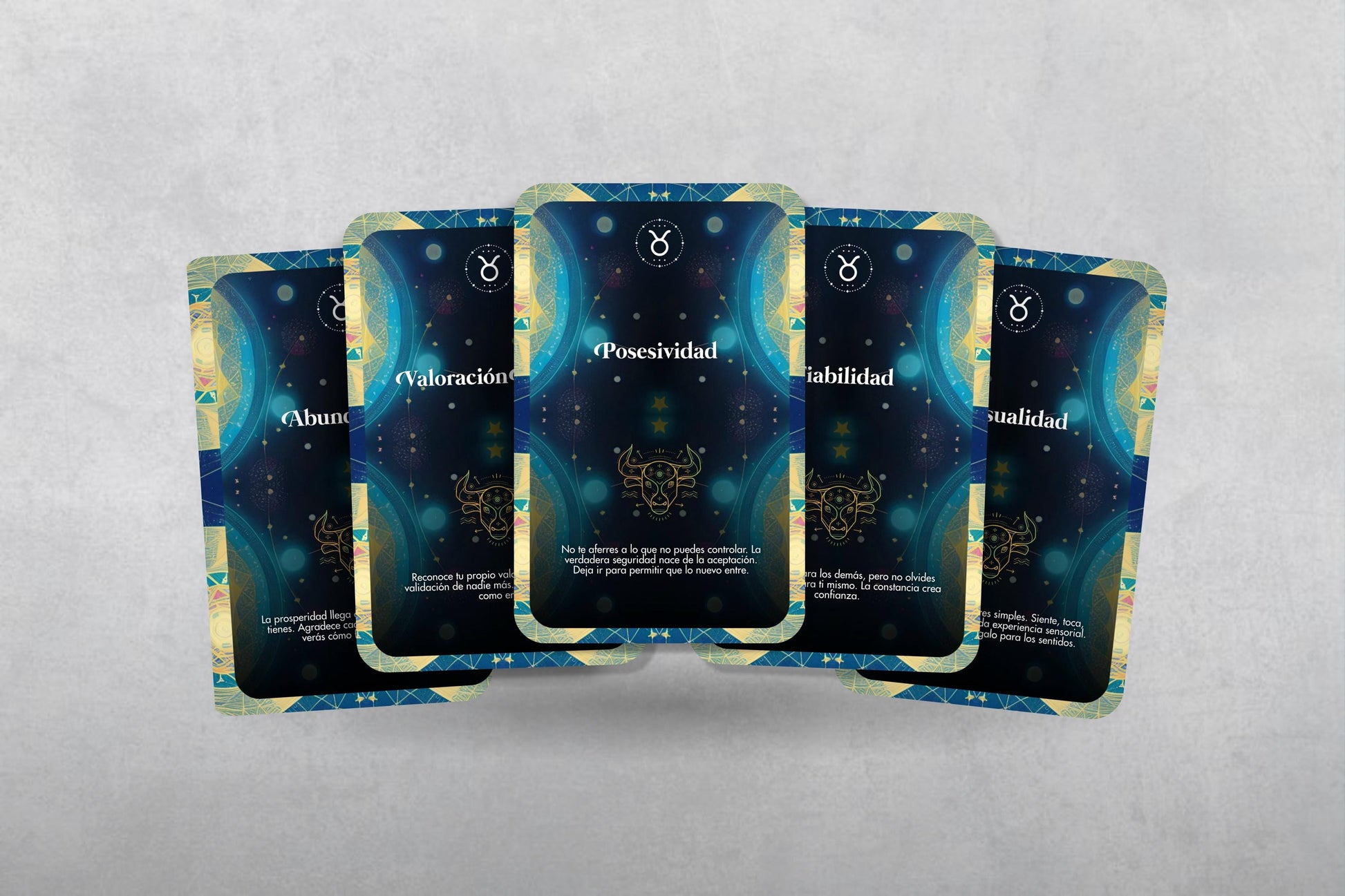 Cada carta presenta un título único y un mensaje personal que refleja los rasgos y fortalezas de Tauro, como la practicidad, la determinación y la apreciación por la abundancia material.