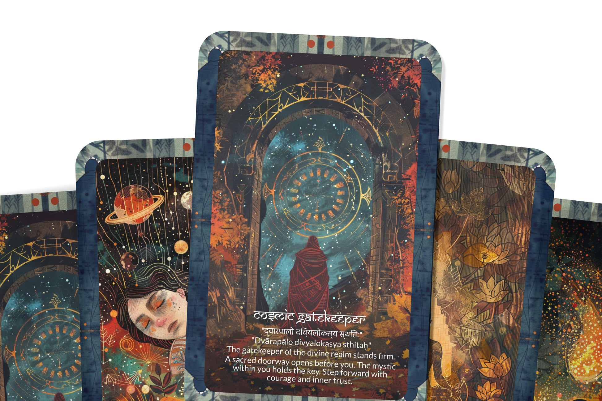 “Mystica Mantra” from the ‘Sacred Cosmic Journey Mantra Oracle’ is a deeply intuitive and otherworldly card that invites you to trust the unseen and embrace the mystery. It carries the energy of sacred knowing, soul remembrance, and connection to realms beyond the physical. This card reminds you that not everything needs to be understood—some truths are meant to be felt. The Mystica Mantra opens portals to inner vision, divine guidance, and spiritual insight. You are walking between worlds now. Drawing this card signals a time to listen more closely to your intuition and dreams. Pay attention to subtle signs and symbols. The universe is whispering to you. Release the need for logic or control. Let wonder guide your path. You are being held in sacred mystery. The unknown is not empty—it is alive with magic. Trust the mystic within.