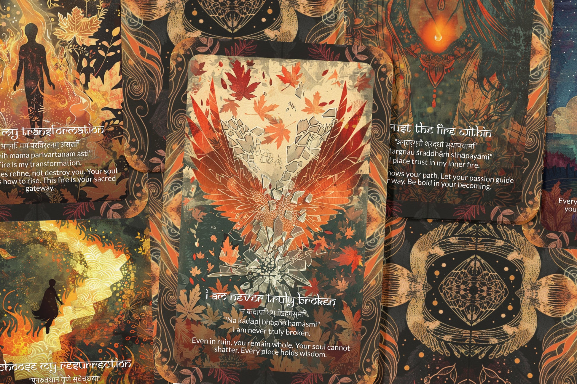 Phoenix Mantra – A Rebirth Oracle Deck – 22 Oracle Cards – Rise from Ash and Begin Again