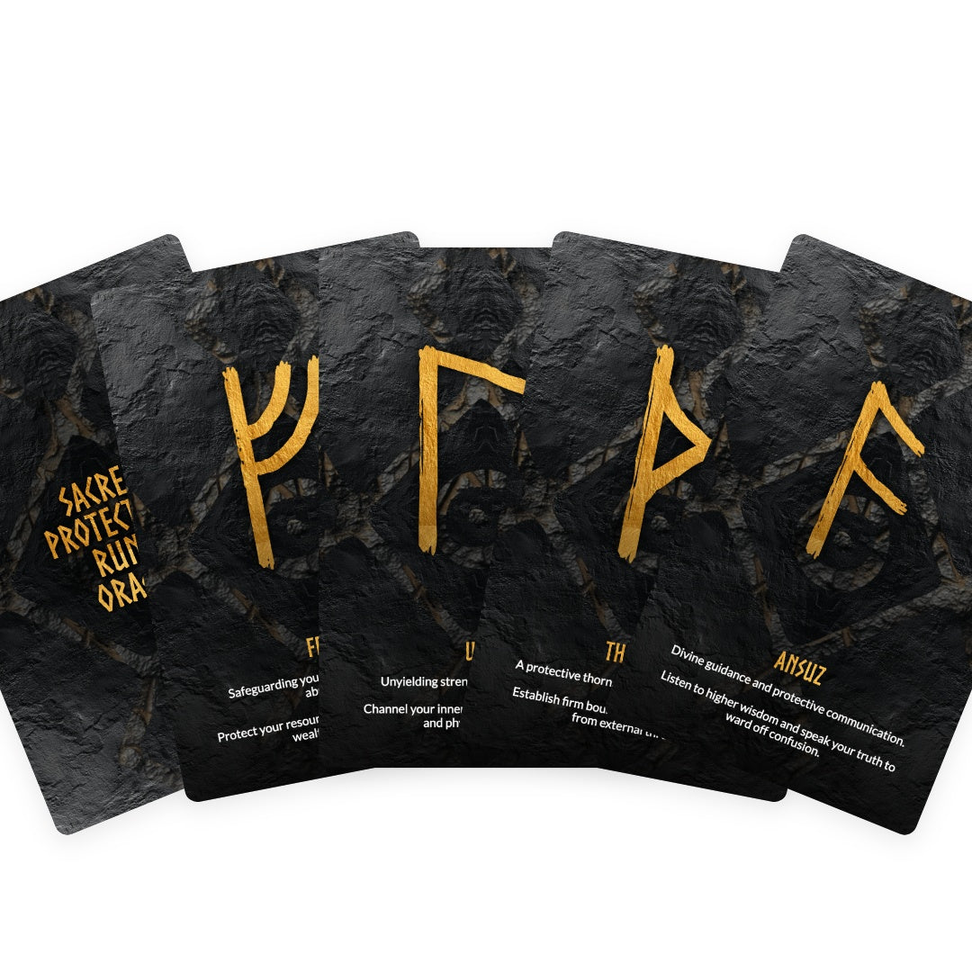 The Sacred Protection Rune Oracle is a meticulously designed 25-card deck that channels the ancient power of runes to offer profound guidance and safeguarding. Each card showcases a distinct rune symbol, rooted in timeless traditions, crafted to evoke potent protective energies tailored to help you navigate challenges with confidence.