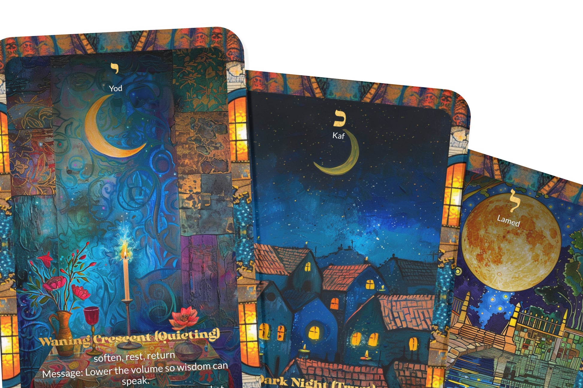 The Moon Oracle draws inspiration from lunar cycles as mirrors of the soul. Each card reflects phases of concealment and revelation, growth and contraction. Just as the moon waxes and wanes, so too does spiritual vitality fluctuate naturally. Through reflective guidance, the deck encourages patience during diminished light and gratitude during fullness. It teaches that renewal follows concealment, and hiddenness prepares expansion. Trusting the rhythm of cycles cultivates serenity and resilience.