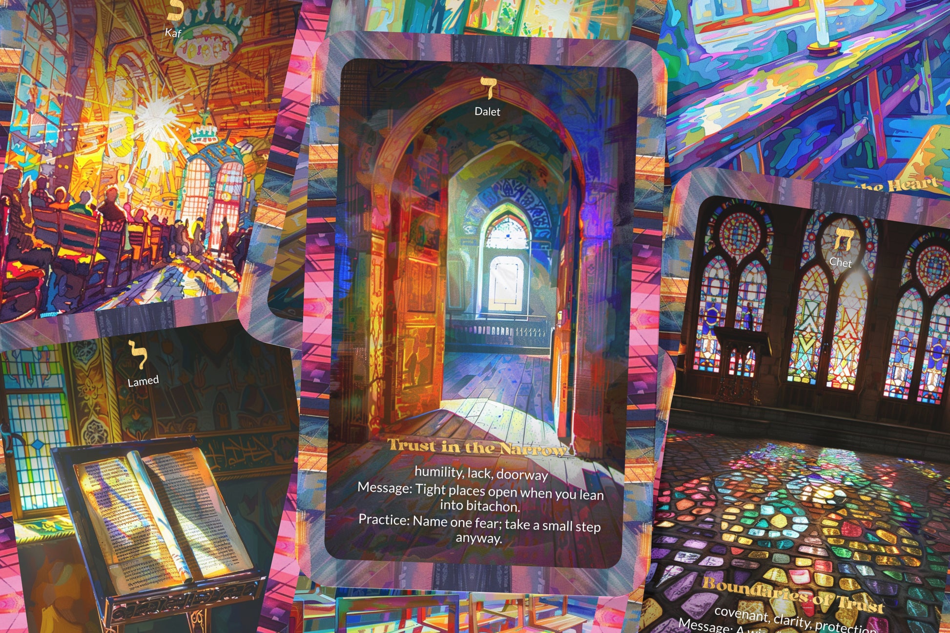 The Trust Oracle explores “bitachon”—active reliance upon divine providence. Each card guides the heart toward calm confidence even amid uncertainty. Trust here is not passive resignation but steady commitment to act responsibly while releasing anxious control. Through layered meditation, the deck strengthens resilience against fear. It teaches that reliance deepens through gratitude and consistent prayer. By walking the path of trust daily, the seeker transforms worry into composed faith and experiences quiet assurance beneath life’s unpredictability.