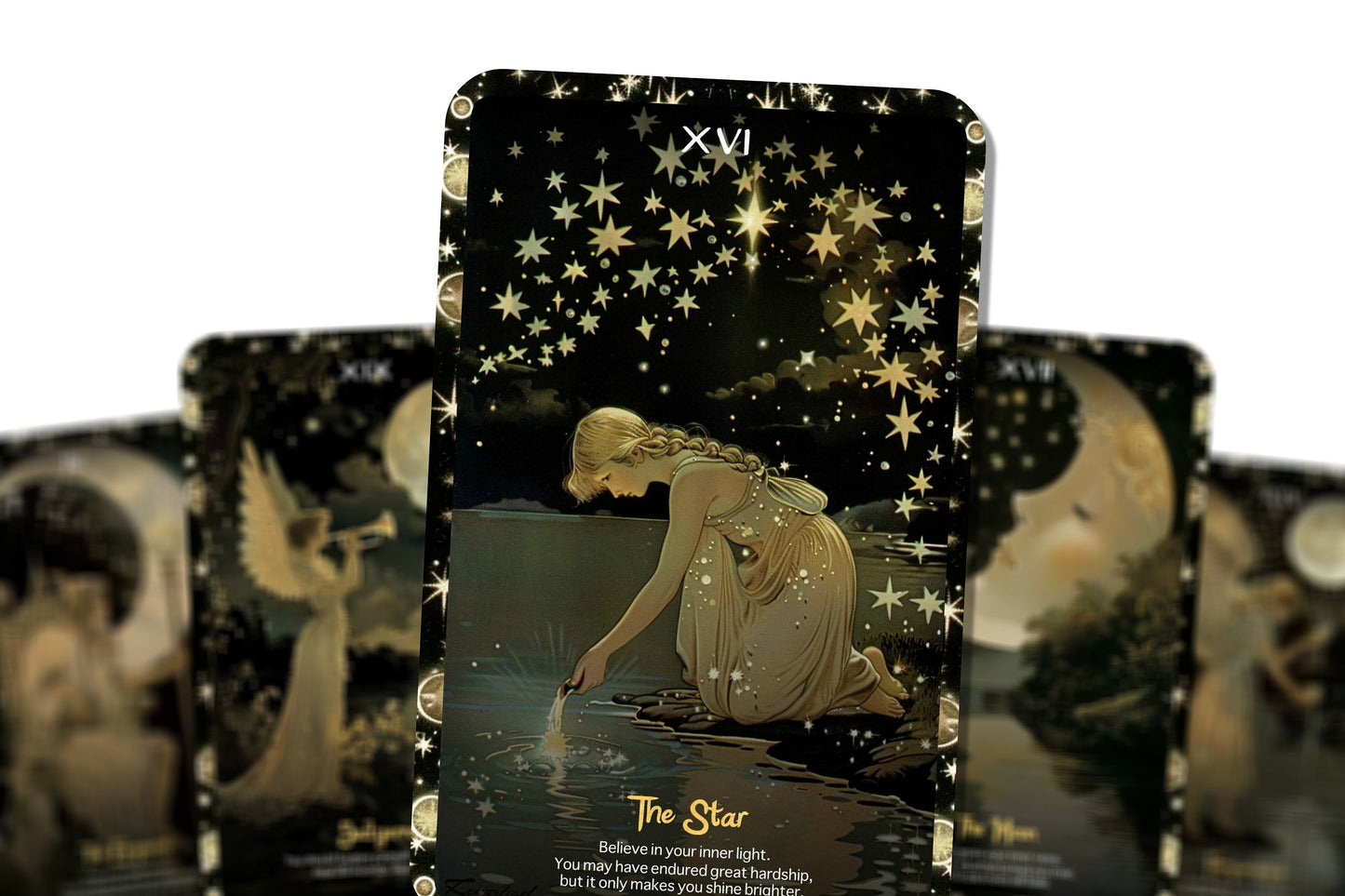 Step into a realm of celestial enchantment with the Angelic Moon Tarot. This deck, adorned with 22 beautifully illustrated Major Arcana cards, serves as a bridge between the earthly and the divine, inviting both novice and seasoned tarot readers to explore the mystical pathways of the universe.