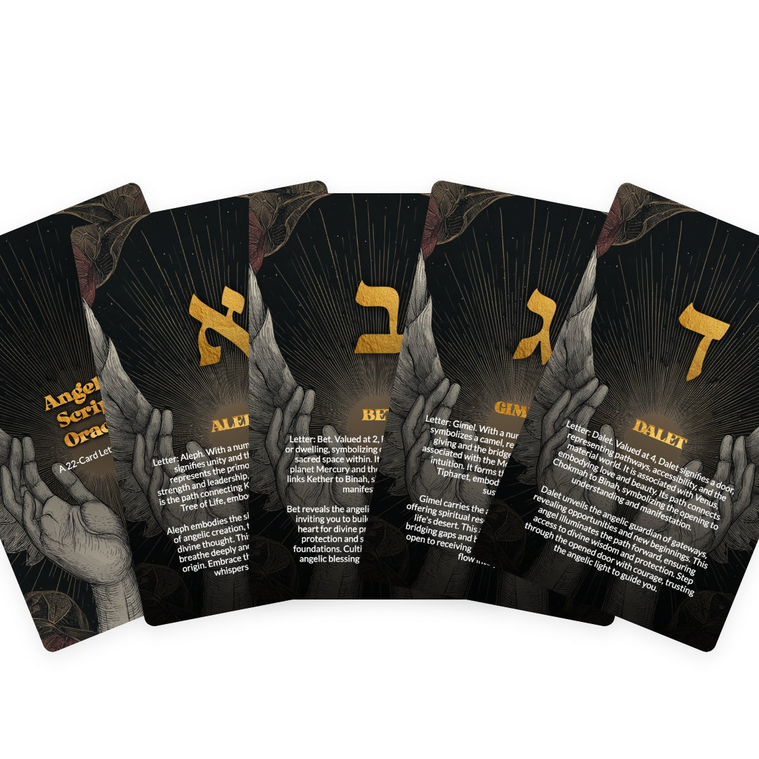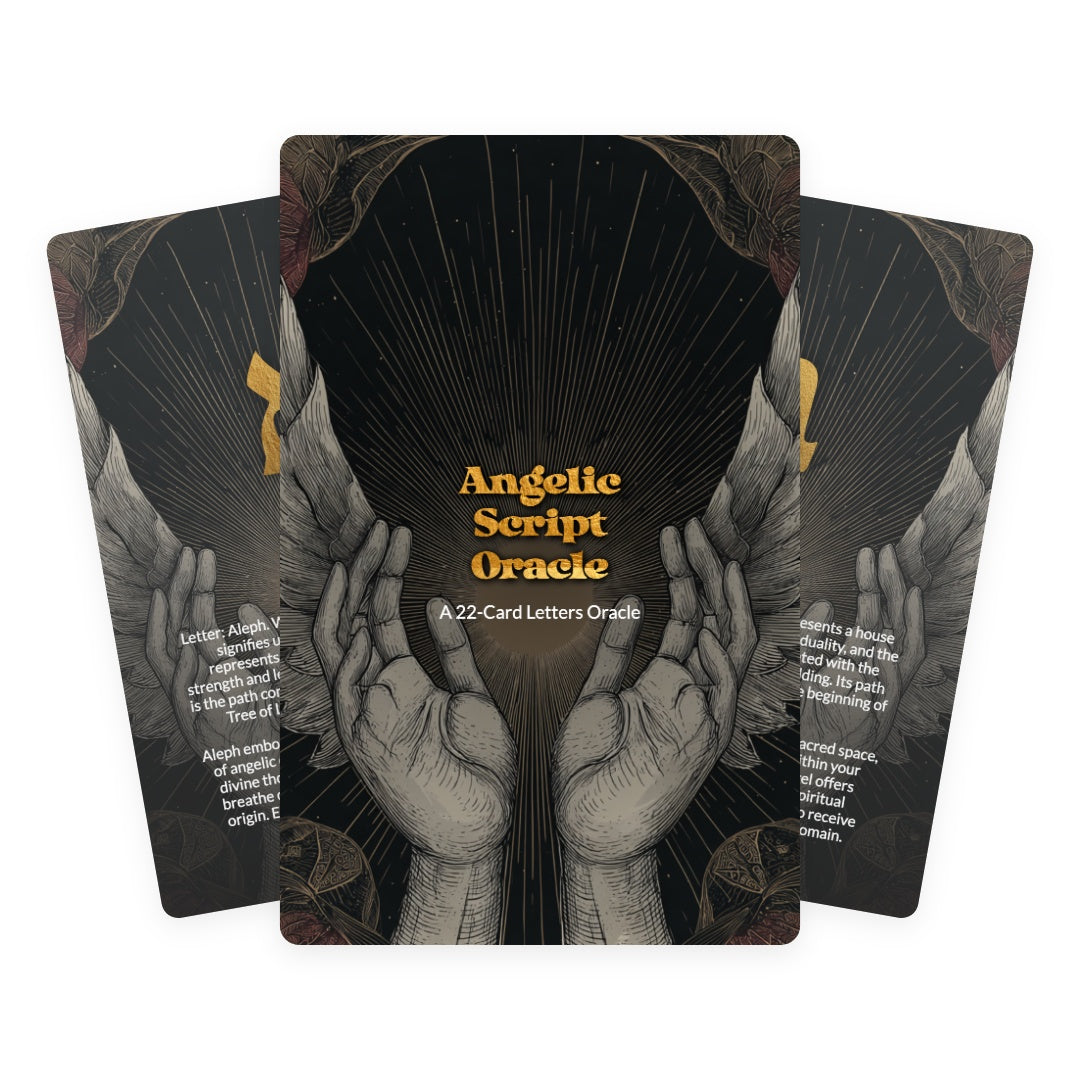 Unveil divine messages with this unique 22-card deck, the "Angelic Script Oracle". Each card presents an ethereal letter, designed to channel angelic guidance and illuminate your path.