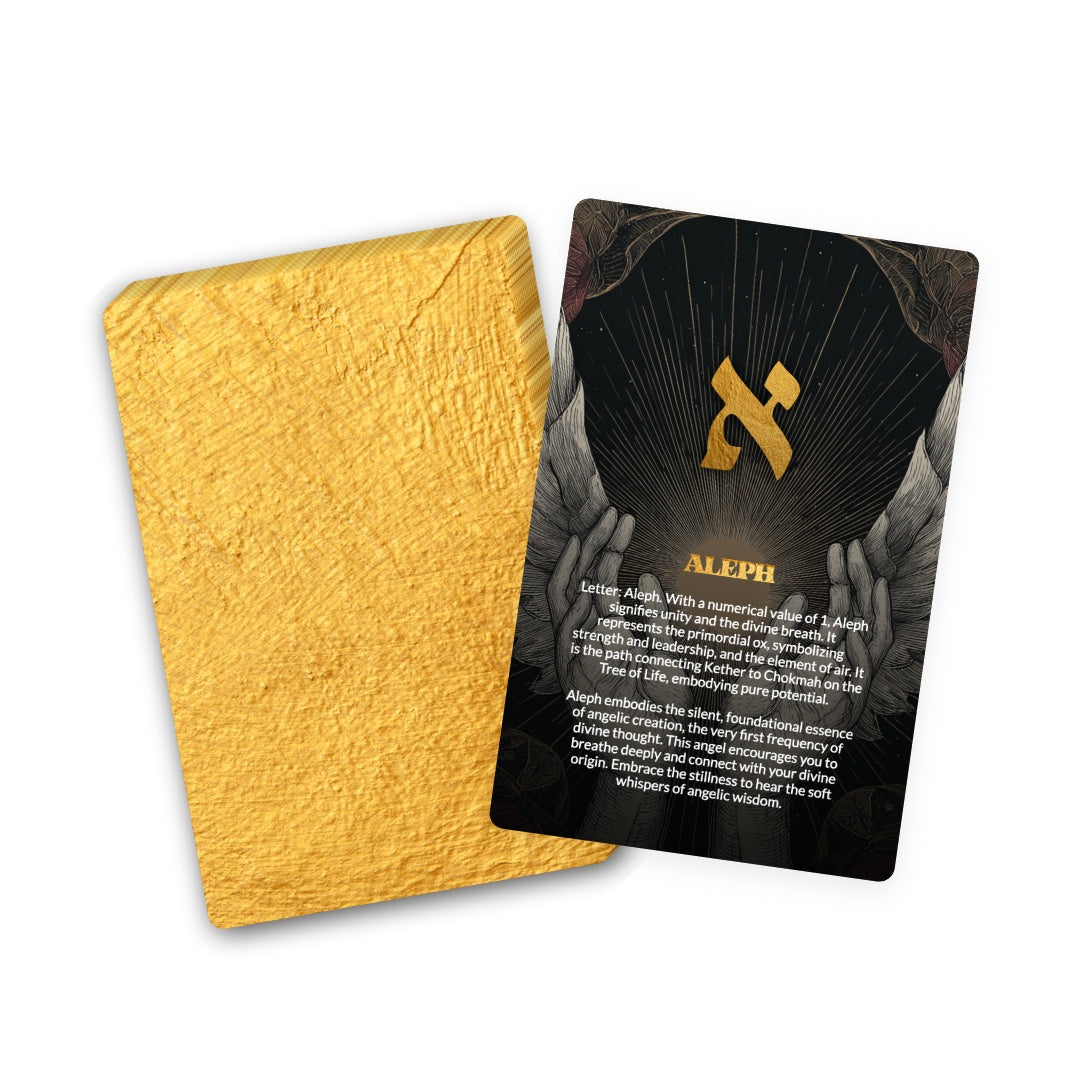 Each of the 22 cards features a distinct angelic letter—a sacred symbol that carries its own vibrational frequency and spiritual significance. Rather than traditional imagery, this deck emphasizes the power of sacred script, allowing your intuition to interpret the subtle energies encoded within each character.