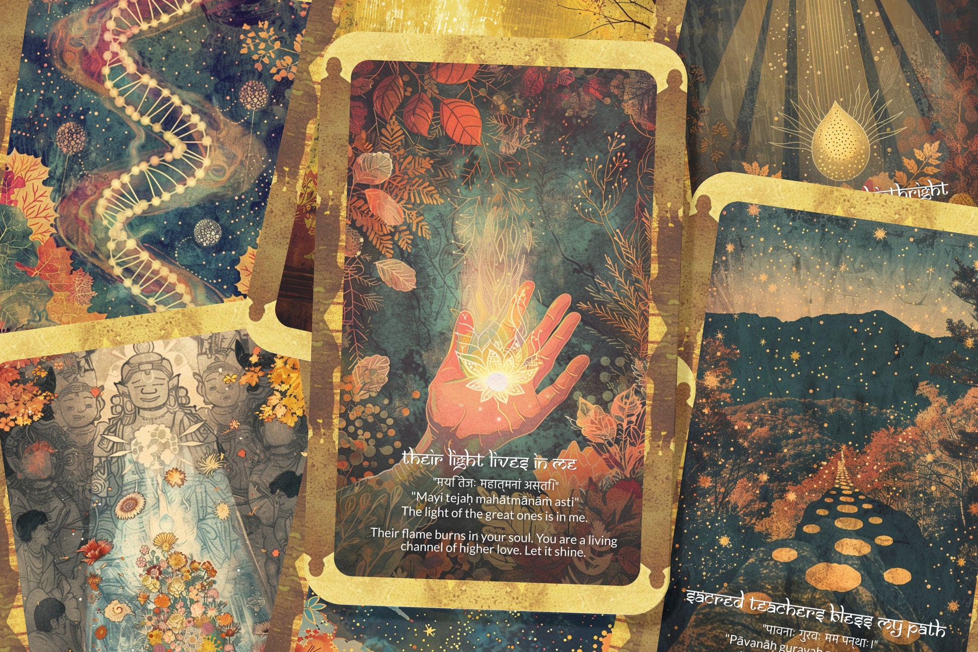 “ Ascended Masters Mantra” from the ‘Protection & Guidance Mantra Oracle’ opens a direct line to divine wisdom and enlightened guidance. This card invites you to commune with spiritual teachers who have transcended the physical plane. The Ascended Masters offer support in moments of challenge and clarity during times of doubt. They remind you of your own sacred purpose and higher potential. Their energy brings truth, peace, and alignment to your path. Drawing this card is a sign that help is near—call upon these beings with intention and trust. Whether it’s Jesus, Quan Yin, Buddha, or other guides, their essence is accessible to you. They are here to uplift, teach, and empower your soul’s evolution. Through meditation, prayer, or intuitive listening, you will feel their presence. Allow their love to anchor you in truth. You are divinely supported and deeply seen.