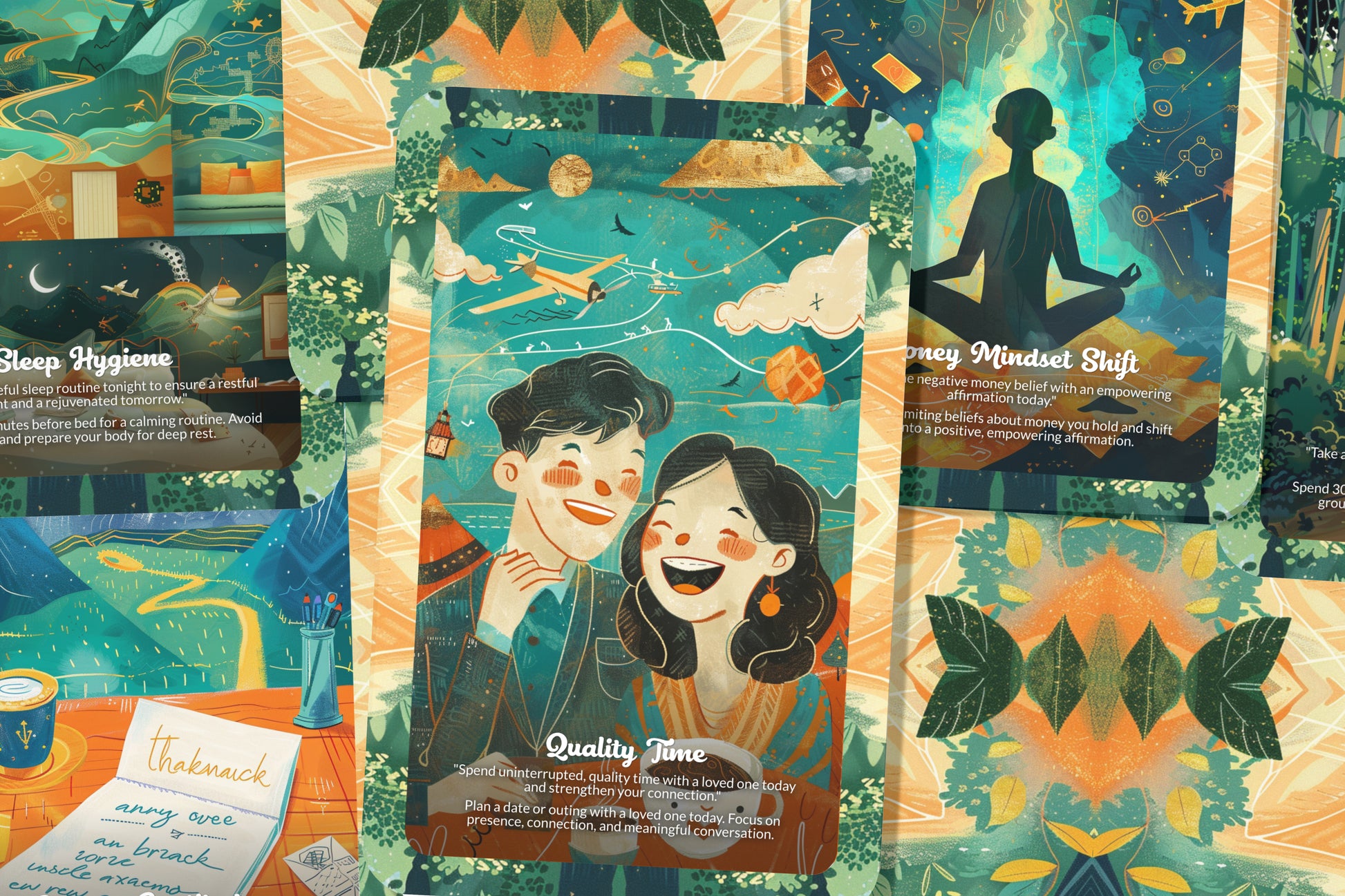 The *Bucket List Challenge Oracle* encourages you to live life fully by inspiring you to pursue your dreams and tackle your biggest goals. Each card challenges you to step outside your comfort zone and embark on new adventures, both big and small. It’s a celebration of living intentionally and making memories that last a lifetime. With practical challenges, uplifting messages, and thought-provoking prompts, the deck guides you to live a life of fulfillment and joy. It helps you identify your passions, explore new horizons, and prioritize what truly matters. This deck is ideal for those who want to turn their bucket list into actionable steps, making each moment count.