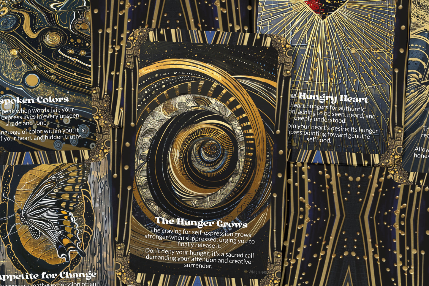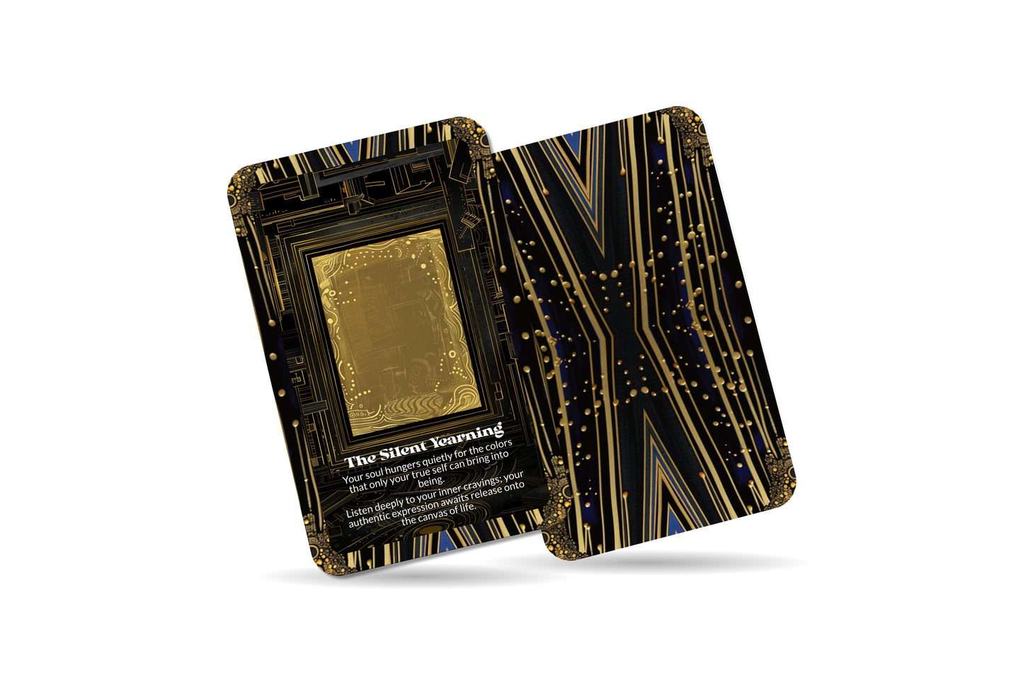 “Canvas Hunger – Inner Voice Unleashed” - Canvas Hunger speaks to the intense desire to express your inner voice without restrictions. This card invites you to embrace your creativity as a means to fully unleash your authentic self. The “hunger” here is a deep, soul-level craving for expression, where the canvas—whether literal or metaphorical—becomes your space to release what has been waiting to be spoken or shared. Through Canvas Hunger, you are encouraged to give voice to your innermost thoughts, feelings, and desires. Don’t hold back or silence yourself—this is your time to create boldly. The card asks you to trust that your authentic expression is needed, and by honoring your creative impulse, you will find both freedom and fulfillment. Let the canvas be your sacred space for self-discovery and truth.