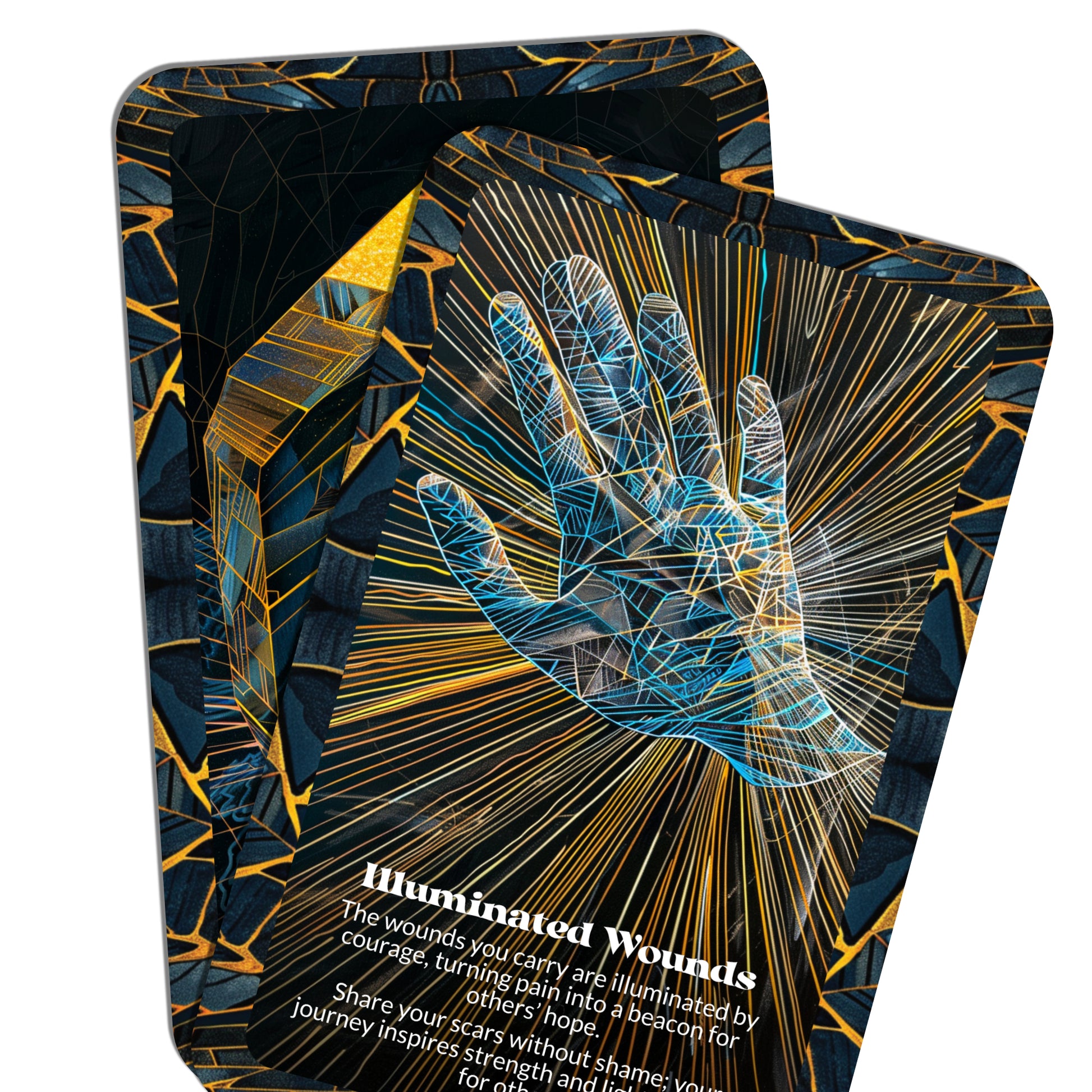 “Cracklight – Resilient Light” - Cracklight illuminates the beauty of resilience, reminding you that even in the darkest moments, your inner light will shine through. This card speaks to the strength that emerges from difficult times and encourages you to honor your capacity to heal and grow despite challenges. Just as light leaks through cracks in the darkness, your resilience is a beacon of hope and strength. This card invites you to celebrate your ability to rise from adversity. Cracklight is a reminder that your light doesn’t diminish in times of struggle; rather, it intensifies, finding new ways to shine. Trust in your power to persevere, knowing that even when you feel broken, your light remains intact and is capable of leading you toward brighter days.