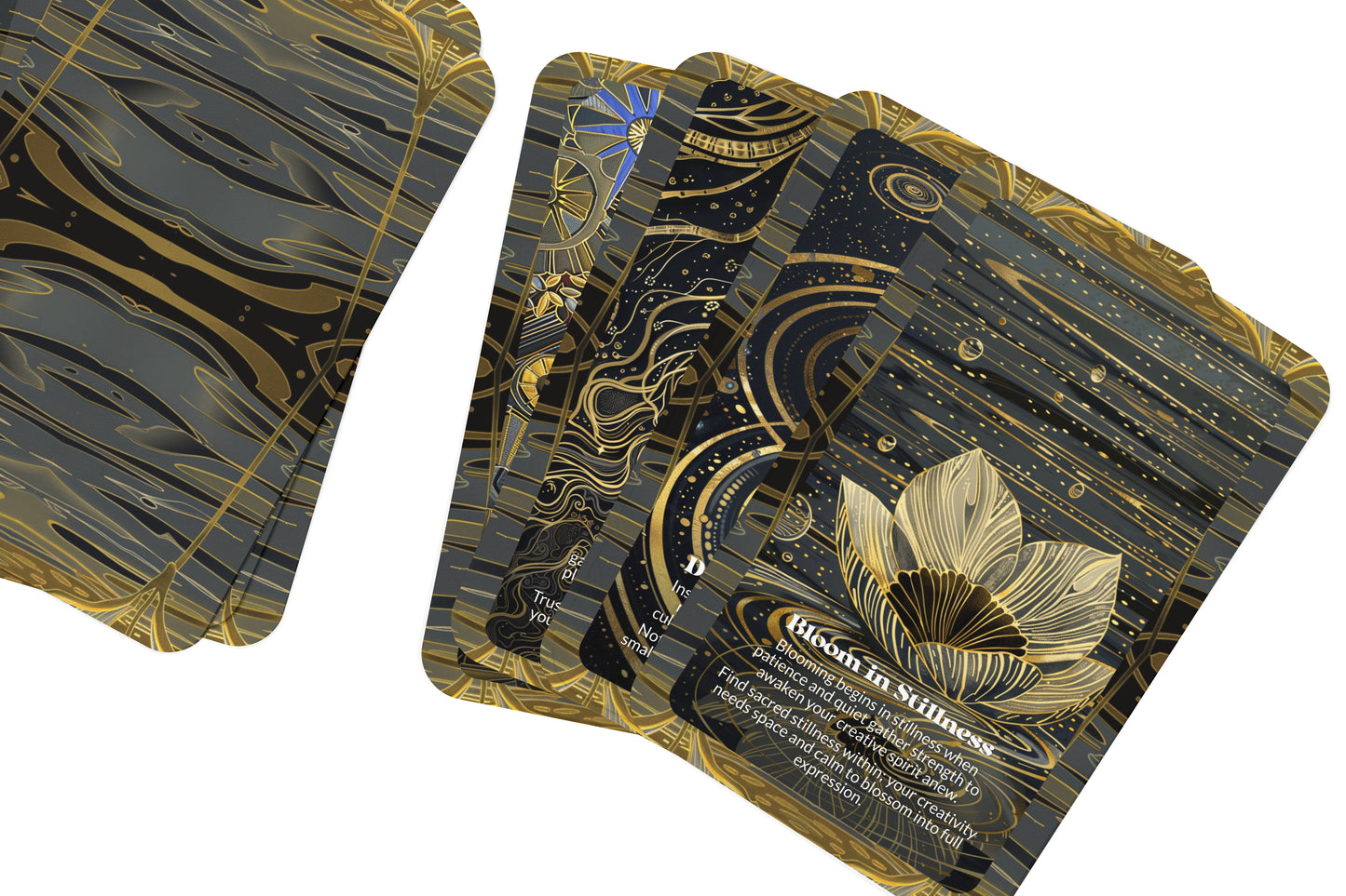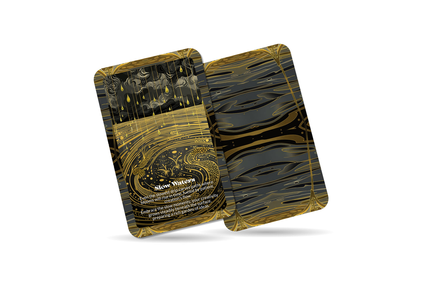 “Drip & Bloom – Creative Cycles” - Drip & Bloom symbolizes the natural cycles of creativity—those moments of steady, quiet growth that lead to beautiful, blooming expressions. This card encourages you to embrace the rhythm of creation, where the smallest drops of inspiration eventually accumulate to create something powerful and expansive. The process of growth, often slow and subtle, is just as important as the final manifestation. When Drip & Bloom appears, it reminds you to be patient with your creative process. Even if your ideas seem to be dripping in slowly, trust that they will eventually bloom into something magnificent. Every step of the journey is valid, and your growth will unfold in its own time. The card asks you to stay dedicated, knowing that the seeds of inspiration you plant today will bloom in ways you may not yet fully understand.