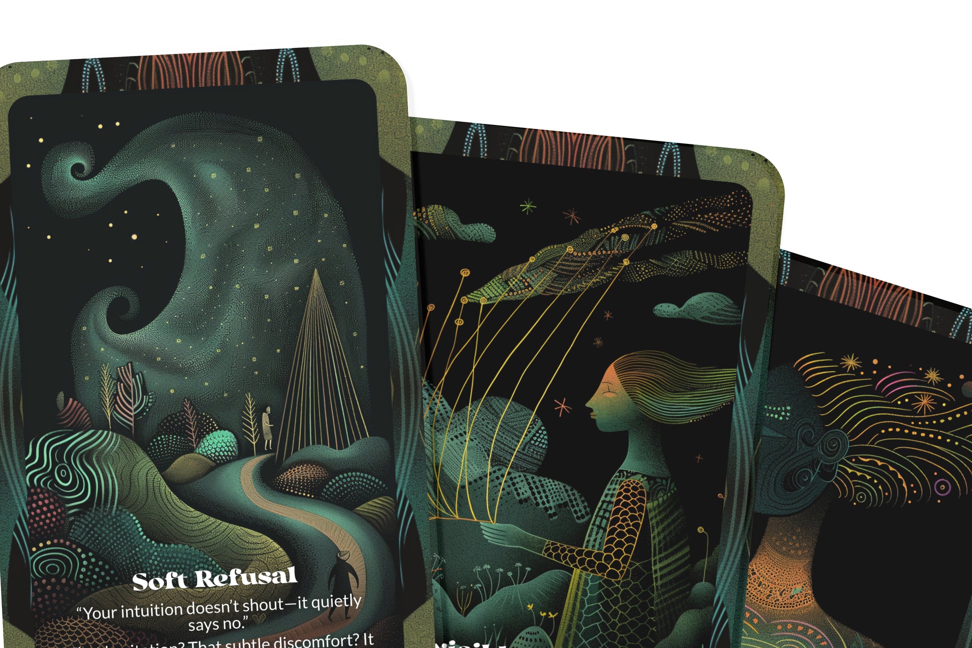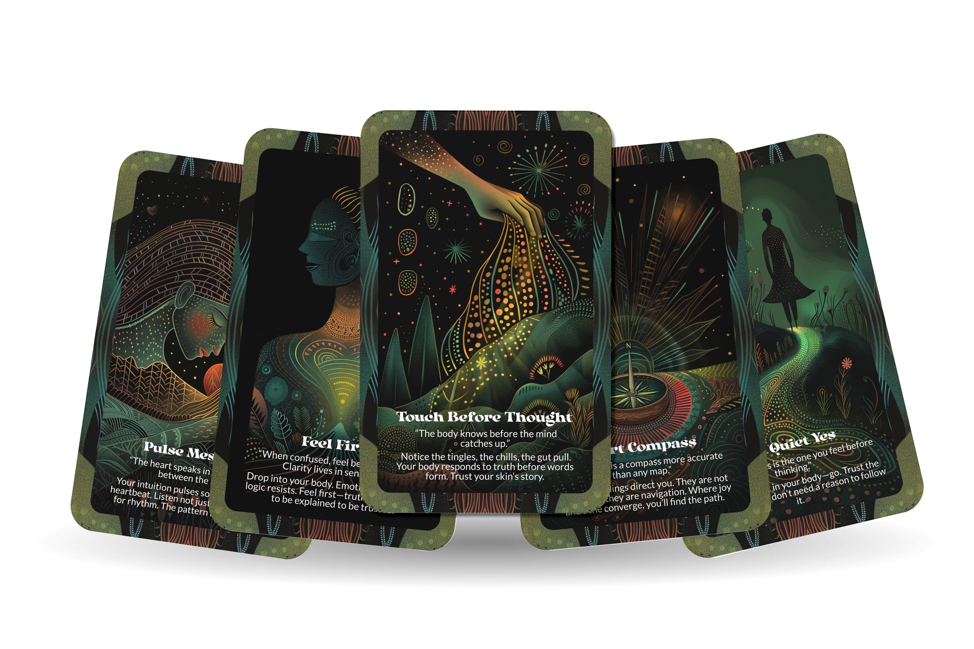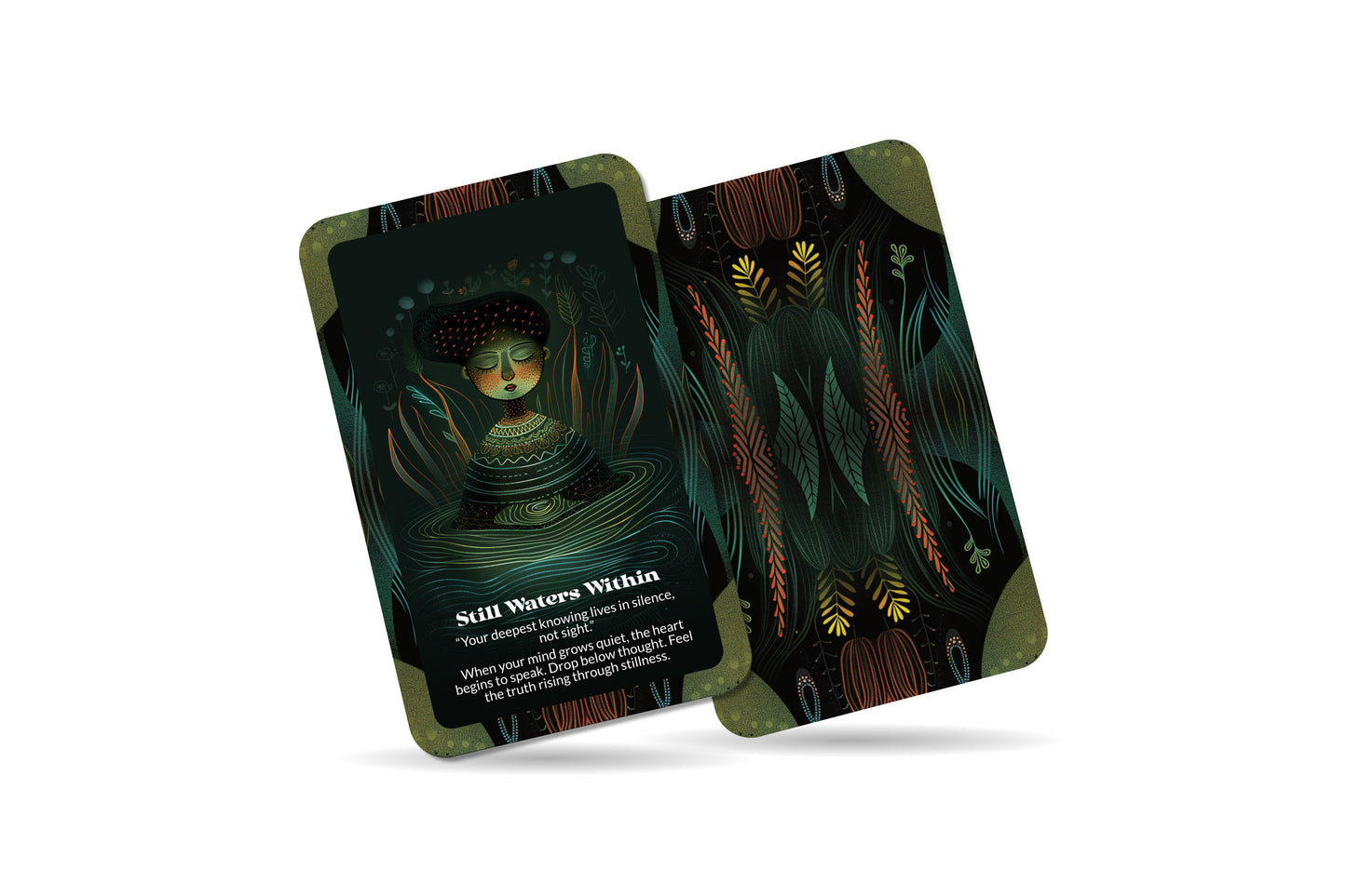 “Eyes Closed, Heart Open – Intuitive Awakening” - Eyes Closed, Heart Open speaks to the awakening of your intuitive powers. With your eyes closed, you rely on the deeper senses of your heart and soul to guide you, trusting that inner knowing will reveal more than what the eyes can see. This card invites you to quiet the mind and open your heart to the wisdom that lies within. In the absence of external distractions, your intuition becomes the loudest voice, and you are called to listen closely. The heart is a powerful guide, and when it leads, there is no need for external validation. This card suggests that you are ready to trust your inner guidance and let it shape your decisions. Trusting your heart’s messages will help you navigate life with more confidence, ease, and clarity. Eyes closed, heart open—this is the way of the awakened soul.