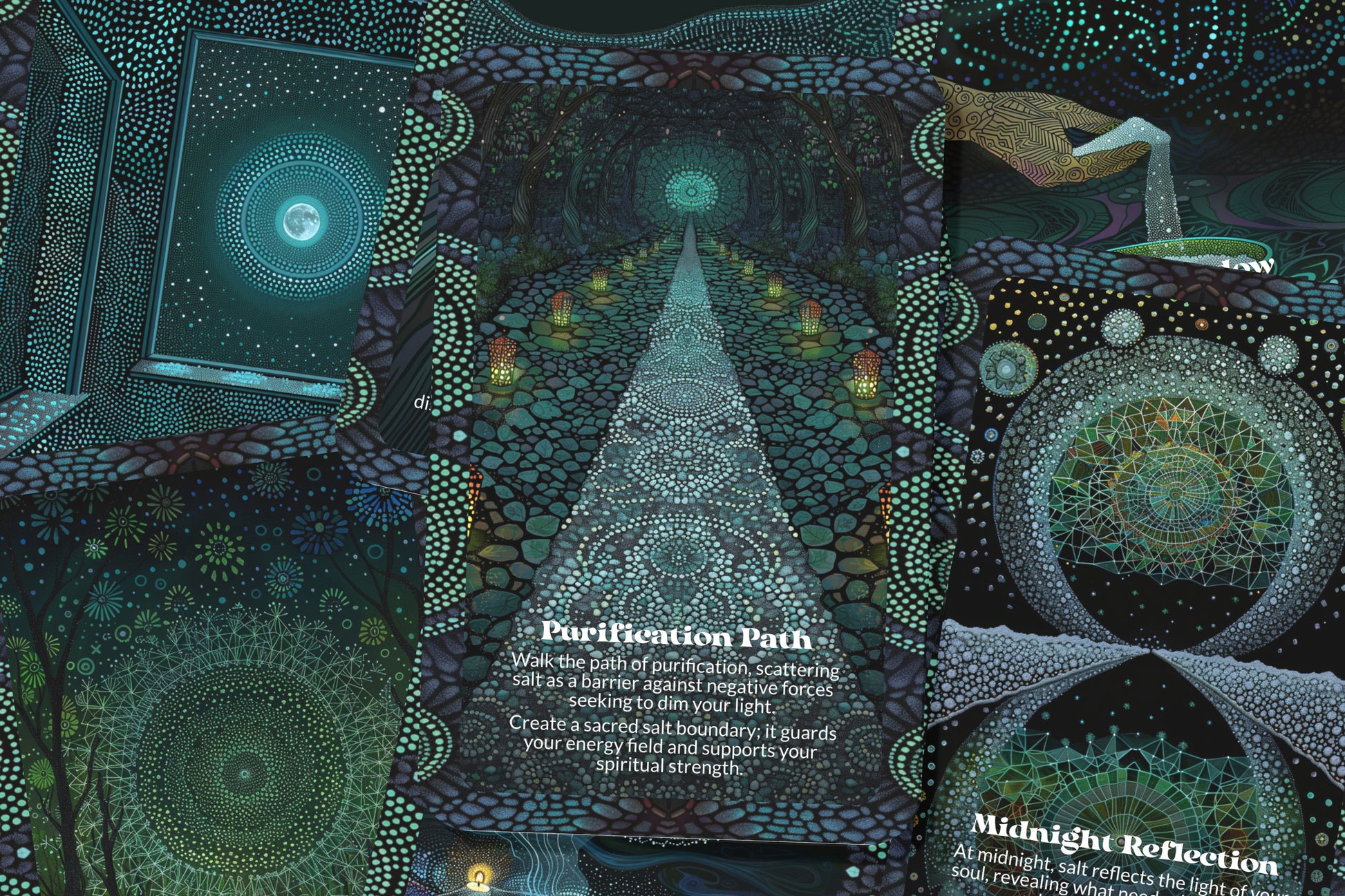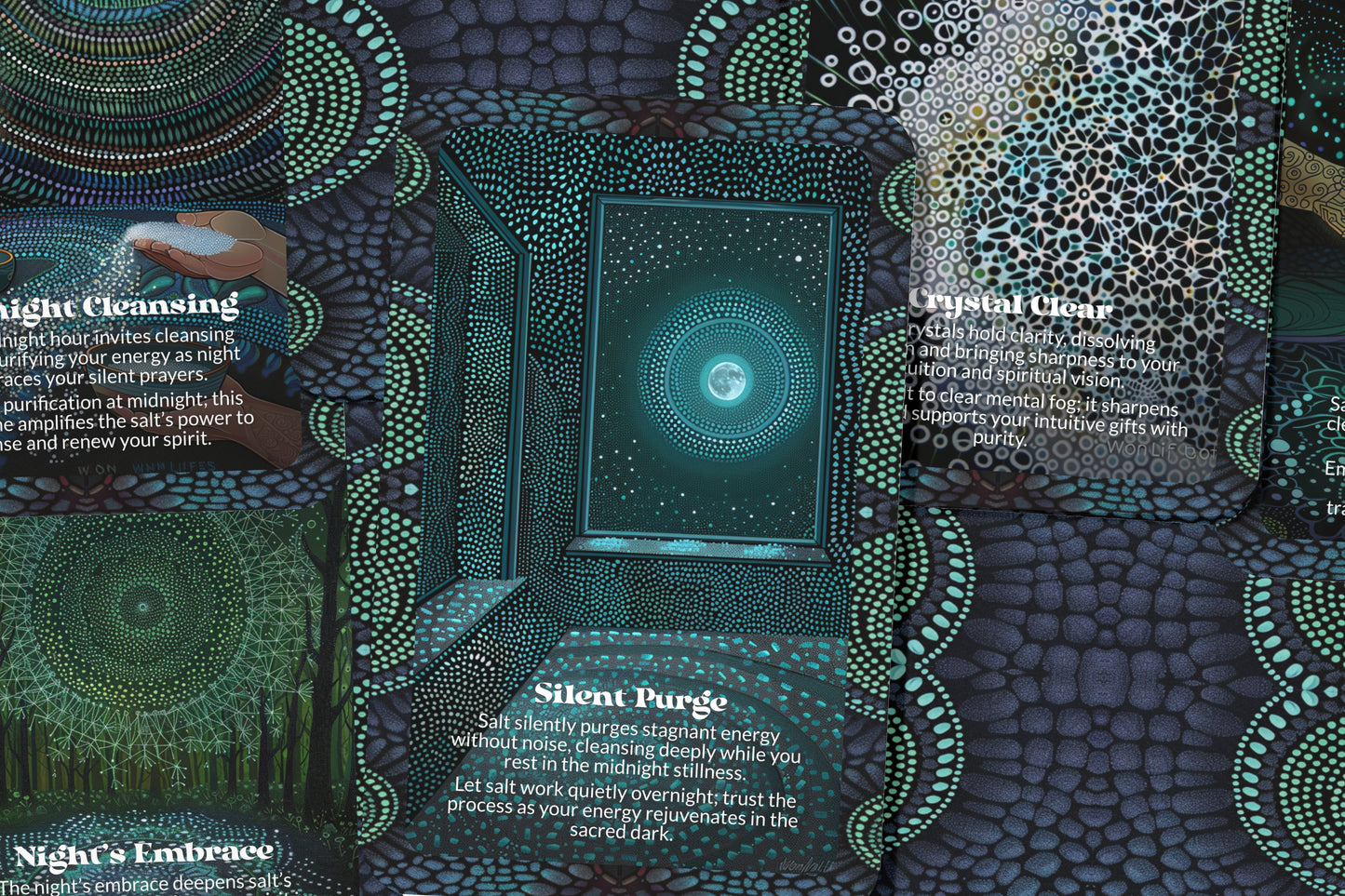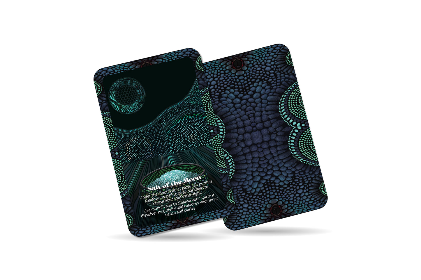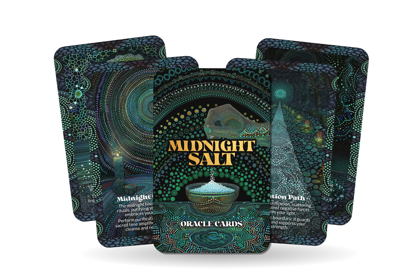 “Midnight Salt – Spiritual Purification” - Midnight Salt offers a ritual of purification, inviting you to cleanse your energy and spirit. Salt, known for its purifying properties, symbolizes the release of negative energy and the clearing of spiritual blockages. The “midnight” aspect speaks to the deep, transformative power of this purification, where darkness gives way to renewal and clarity. This card encourages you to engage in practices that cleanse your aura and realign your energy. Whether through salt baths, rituals, or sacred spaces, Midnight Salt offers a reminder that spiritual cleansing is an essential part of your healing journey. It’s time to release what no longer serves you and step into your highest self, purified and renewed.