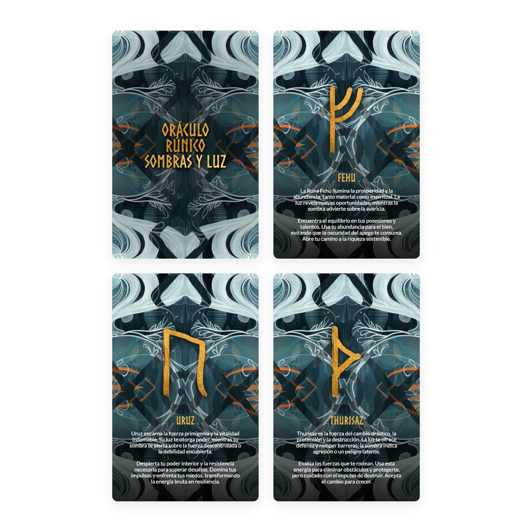 Cada runa actúa como un faro que ilumina las fuerzas duales que influyen en tu vida, facilitando una comprensión equilibrada de los aspectos luminosos y sombríos de tu existencia.