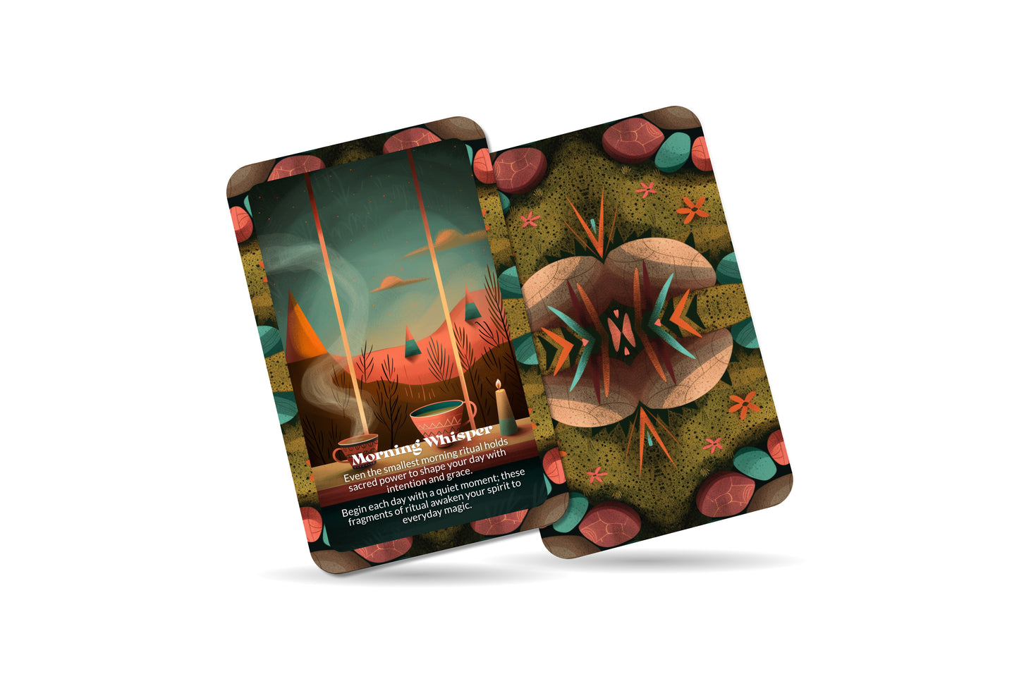 “Ritual Fragments – Everyday Magic” - Ritual Fragments encourages you to find magic in the small, everyday moments. This card suggests that sacredness does not always come in grand gestures, but in the fragments of routine, intention, and presence. Whether it's lighting a candle, sipping tea, or pausing for a moment of gratitude, these tiny rituals carry great meaning and power. By honoring the fragments of ritual in your daily life, Ritual Fragments invites you to recognize that magic is not separate from the mundane. Each small act can hold immense energy, grounding you in the present moment. This card reminds you to slow down and engage with the sacredness of your life’s rituals, no matter how simple they seem.