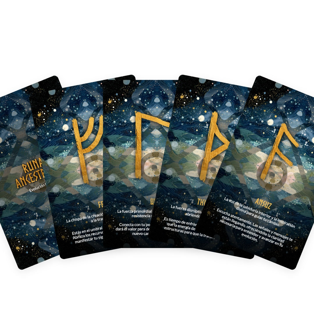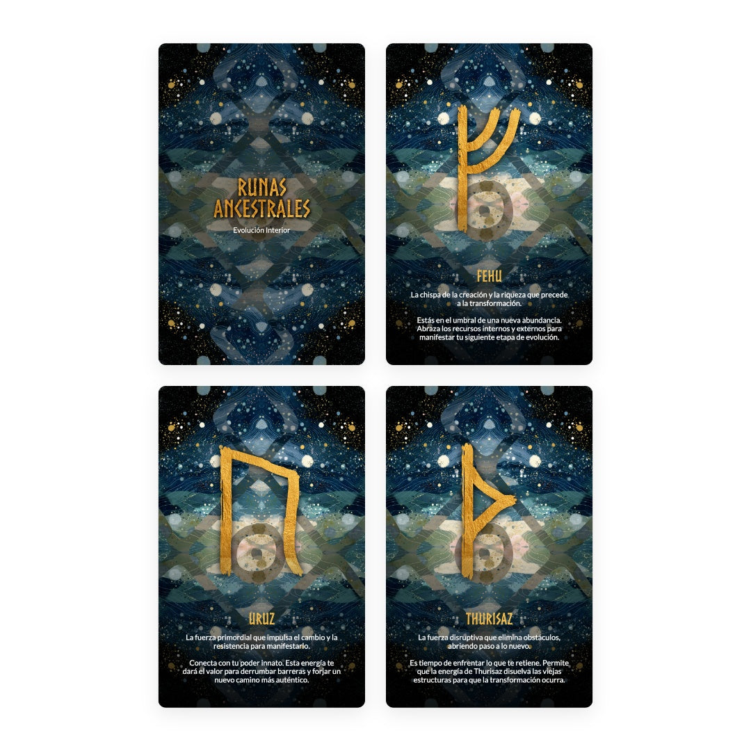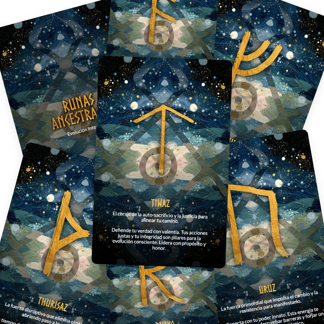 Runas Ancestrales: Evolución Interior es un mazo compuesto por 25 cartas únicas que capturan la sabiduría profunda de las runas antiguas. Cada carta actúa como un faro espiritual que facilita la conexión con energías ancestrales, proporcionando guía clara para quienes buscan un auténtico proceso de transformación personal.