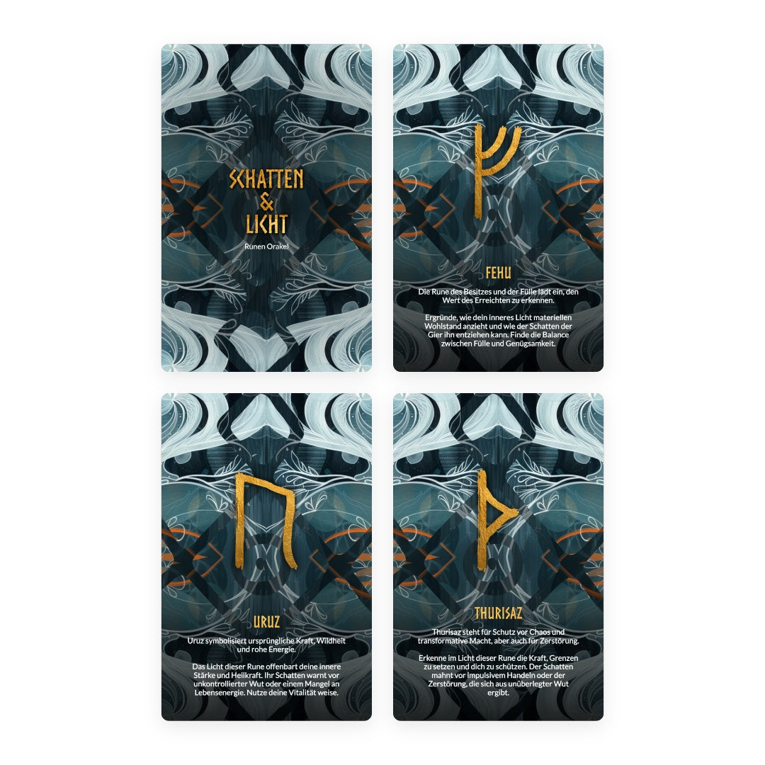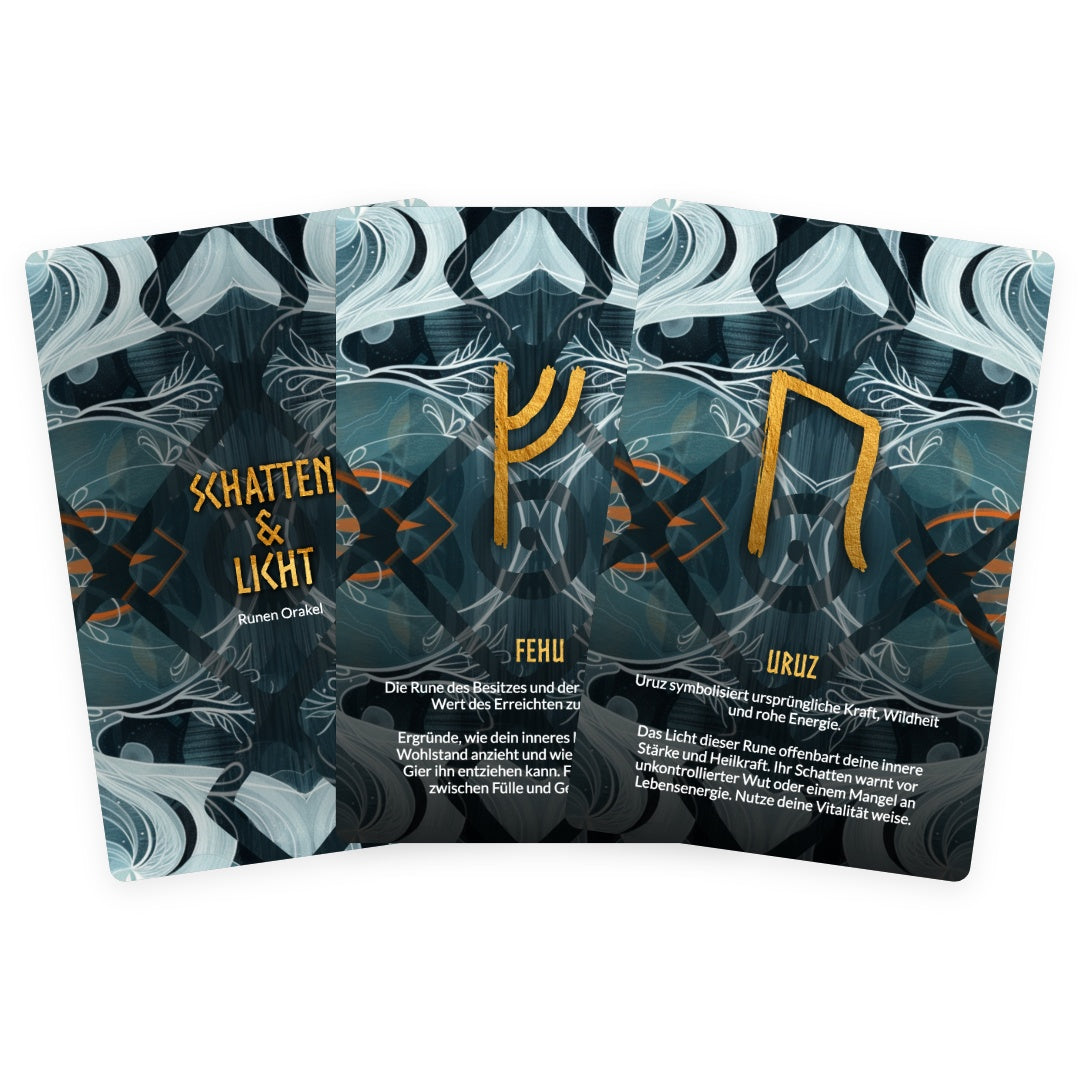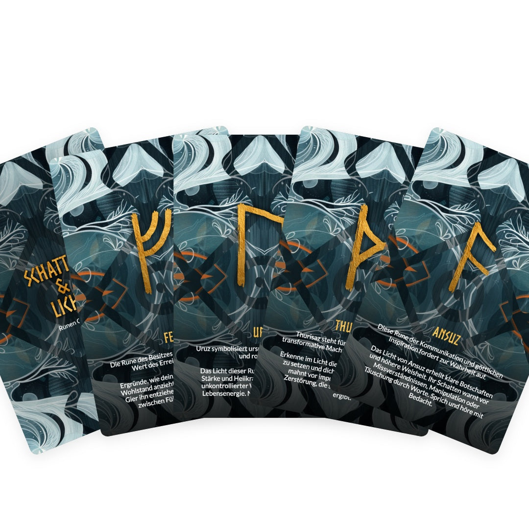 Das 25-Karten-Deck „Schatten & Licht: Runen Orakel“ eröffnet einen tiefgründigen Zugang zur Erforschung der dualen Natur des Seins. Mit kunstvoll gestalteten Symbolen verbindet es die archetypischen Kräfte von Schatten und Licht, um verborgene Aspekte Ihrer Persönlichkeit und Lebensphase sichtbar zu machen.