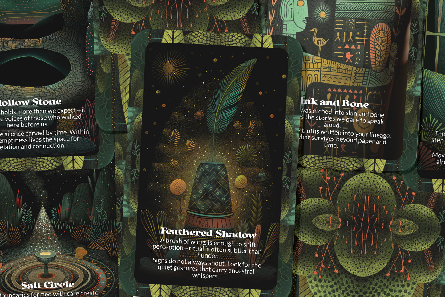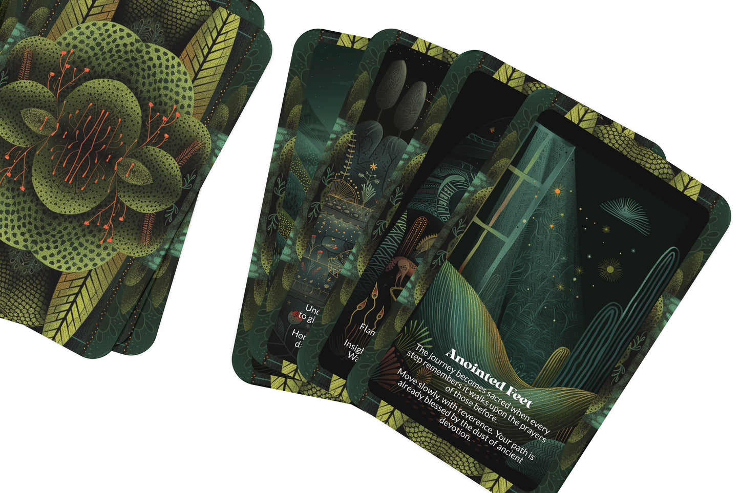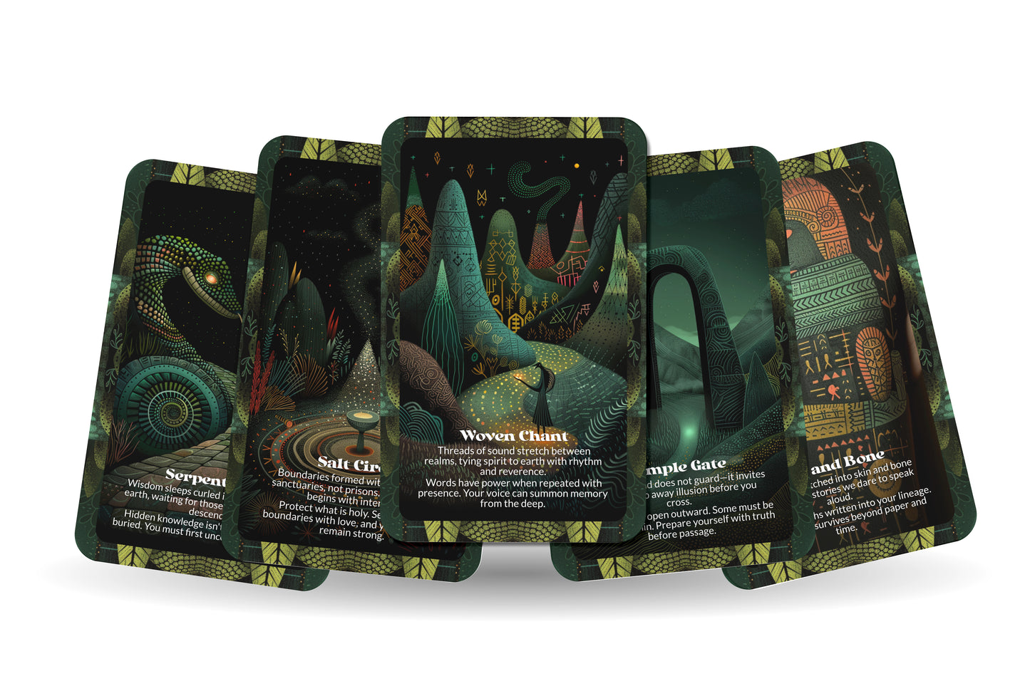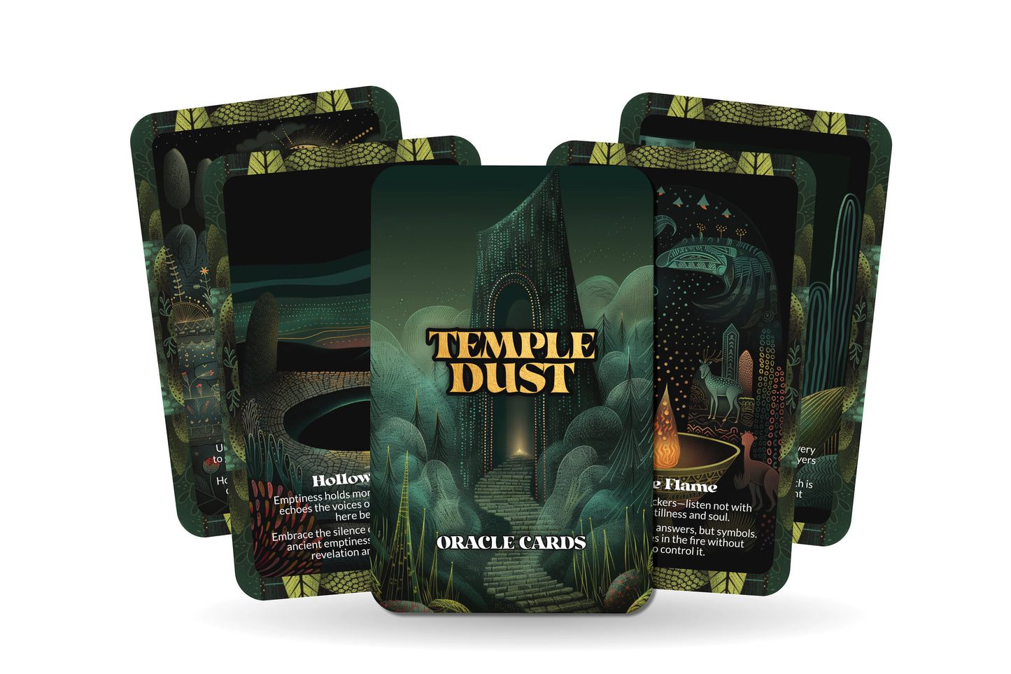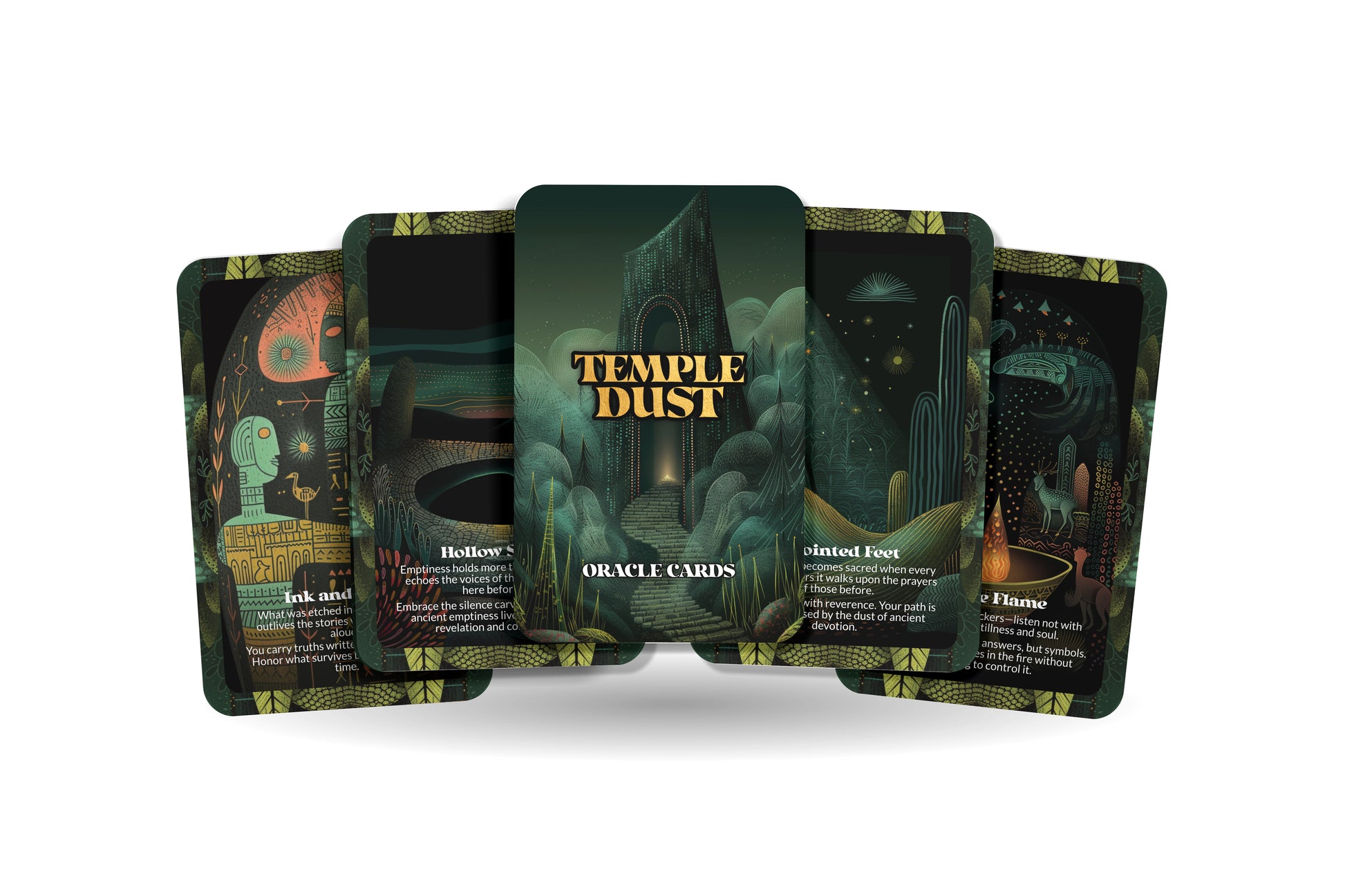 “Temple Dust – Ancient Wisdom & Divine Ritual” - Temple Dust connects you to the sacred energies of ancient rituals and wisdom. The card invites you to honor traditions and spiritual practices that have been passed down through the ages. This wisdom is timeless, and it carries with it a deep sense of reverence and connection to the divine. It may also symbolize a need to reconnect with your own sacred practices or rituals to deepen your spiritual connection. Like dust that gathers in the corners of ancient temples, this wisdom is ready to be uncovered and integrated into your life. This card asks you to pause and reflect on your own spiritual journey—whether through meditation, prayer, or ceremony. There is power in returning to the sacred and allowing the divine to guide you through the rituals of life.