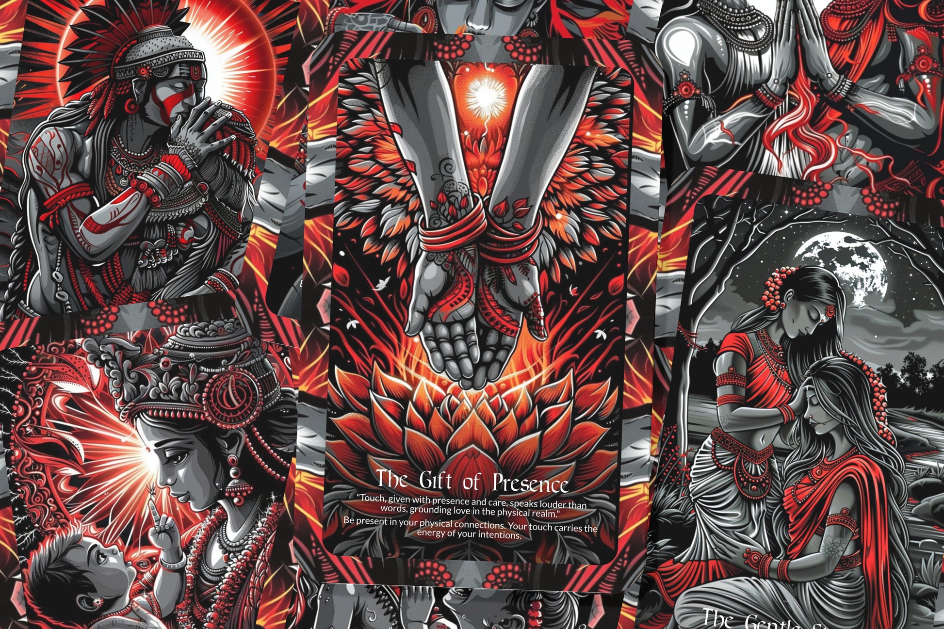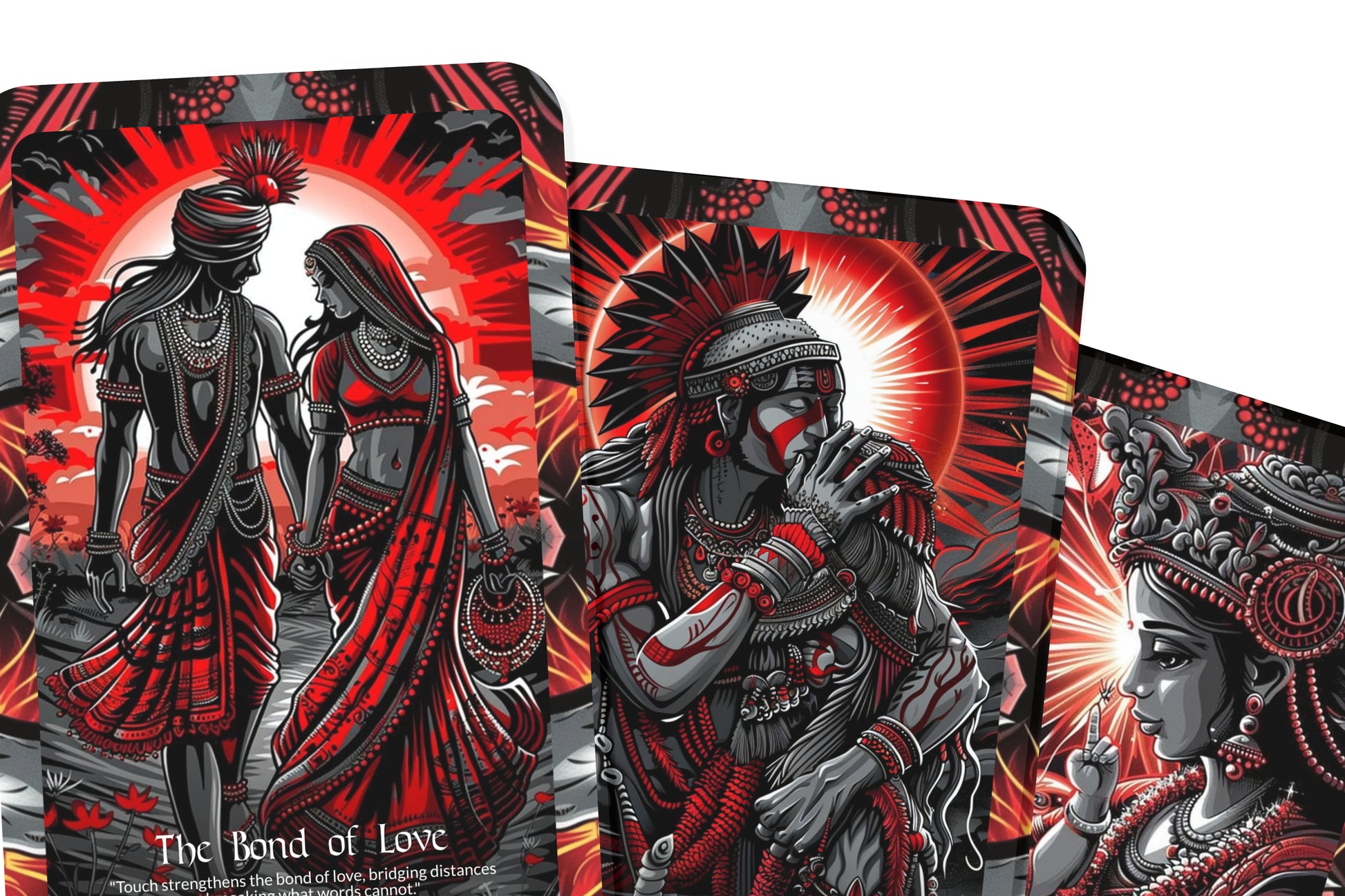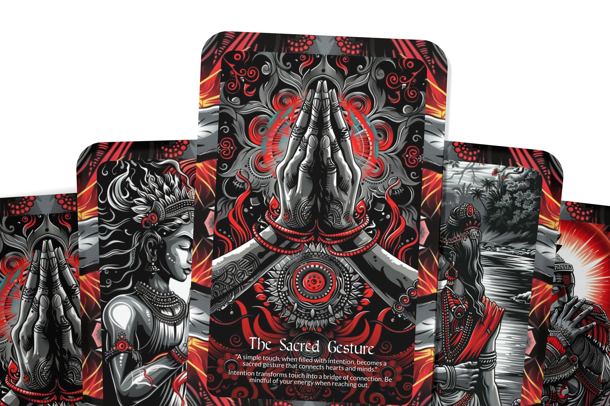 The Art of Touch Oracle emphasizes the profound power of touch as a form of communication, connection, and healing. In Indian traditions, touch is seen as an essential part of human interaction, whether in healing practices, sacred rituals, or personal relationships. This oracle encourages individuals to cultivate mindful, loving touch, using it as a tool for spiritual and emotional connection. In many Indian spiritual practices, touch is considered a divine form of energy transfer. The Art of Touch Oracle invites seekers to explore the transformative power of touch, whether through healing touch, sacred rituals, or simply connecting with loved ones. It teaches that touch, when experienced with awareness, can bring healing, joy, and a deeper connection to the divine, facilitating spiritual growth and transformation.
