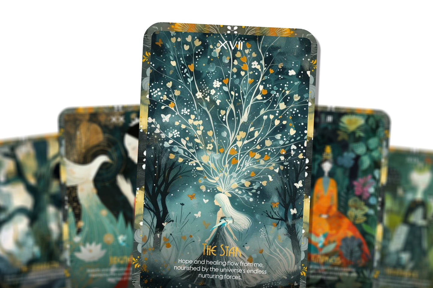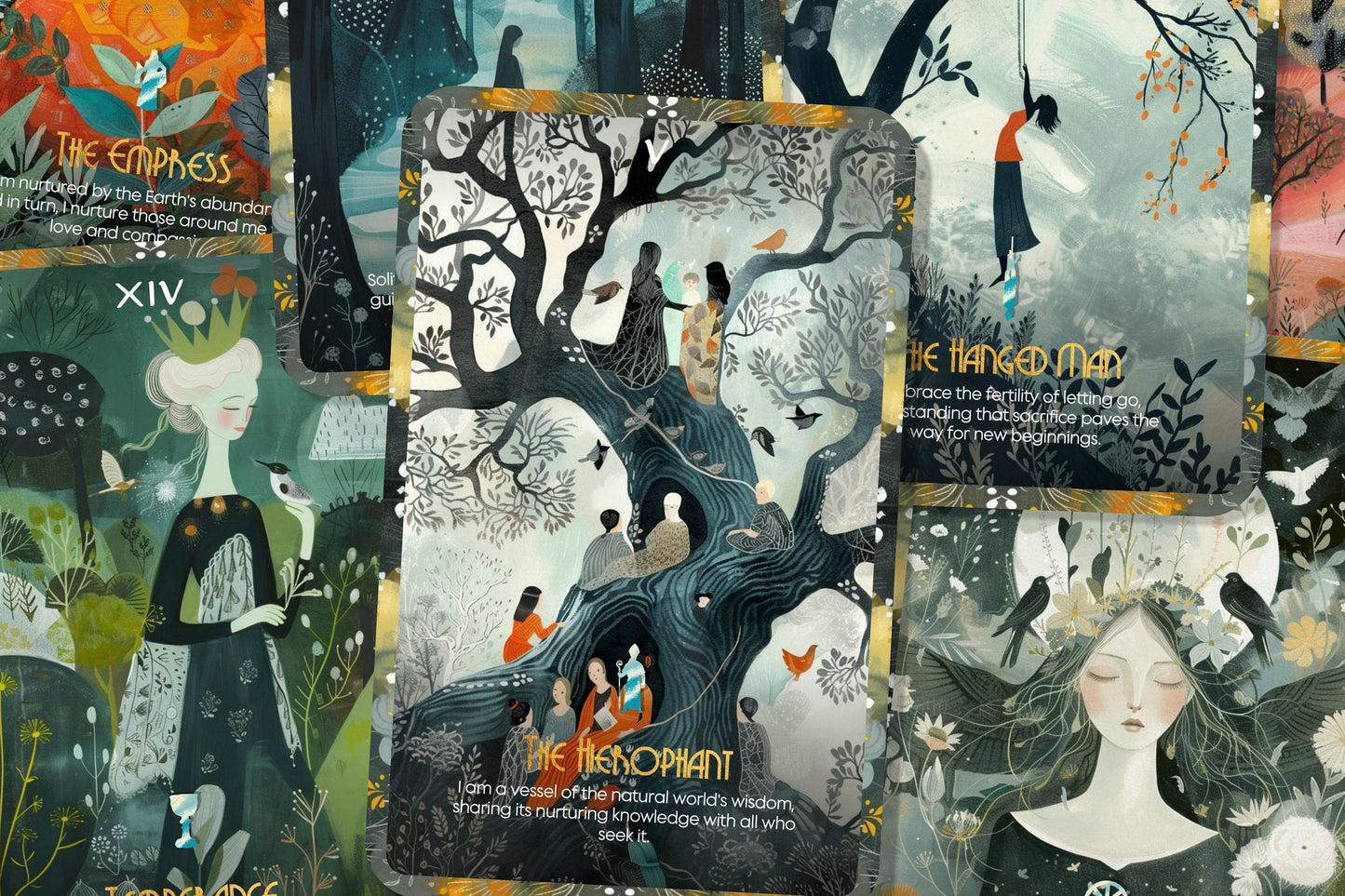 The imagery, inspired by the lush and vibrant realms she governs, offers a fresh perspective on the traditional themes of the Major Arcana, reimagined as chapters in The Empress's own journey.