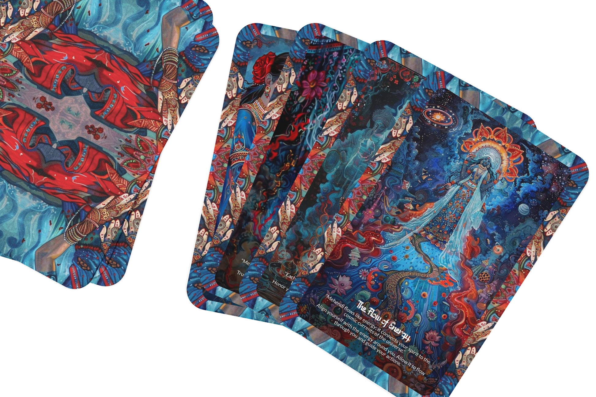 The Mehendi Oracle is inspired by the rich cultural and spiritual significance of mehendi (henna) in Indian tradition. Often used in wedding rituals and celebrations, mehendi is believed to bring prosperity, happiness, and protection. This oracle connects individuals to the sacred art of mehendi, guiding them to create beauty and healing through their own life’s patterns and experiences. In Indian culture, mehendi symbolizes celebration, fertility, and good fortune. The Mehendi Oracle invites individuals to reflect on their own sacred marks—those experiences, choices, and designs that shape their lives. It emphasizes the importance of creativity, patience, and embracing the rituals that help us connect to the divine, encouraging seekers to use their own hands to draw the patterns of their destiny.