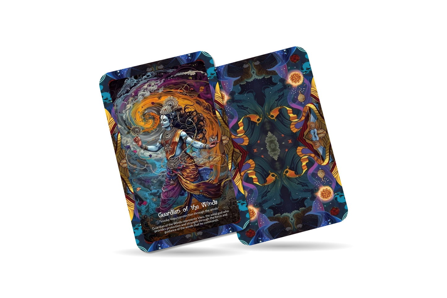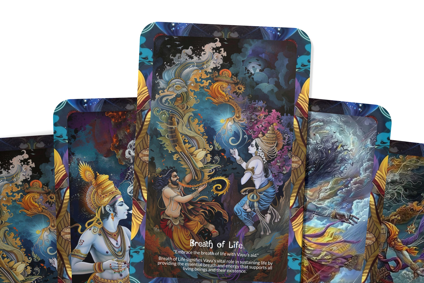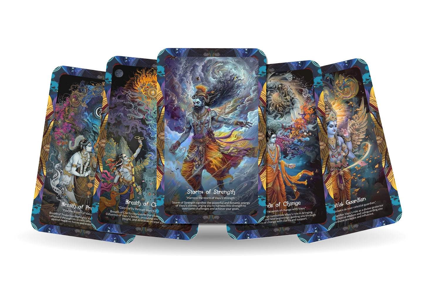 Invoke the protective energy of Vayu, the wind god, with these oracle cards. Each card offers guidance on protection, freedom, and the movement of spiritual energy, helping you navigate the winds of change with grace and resilience.