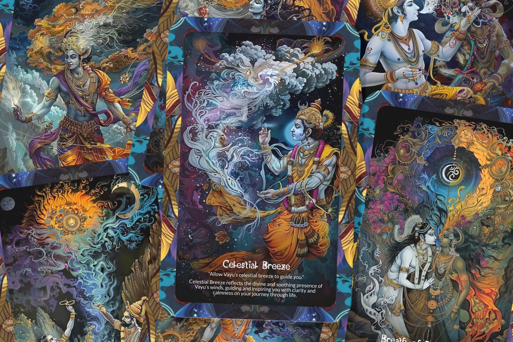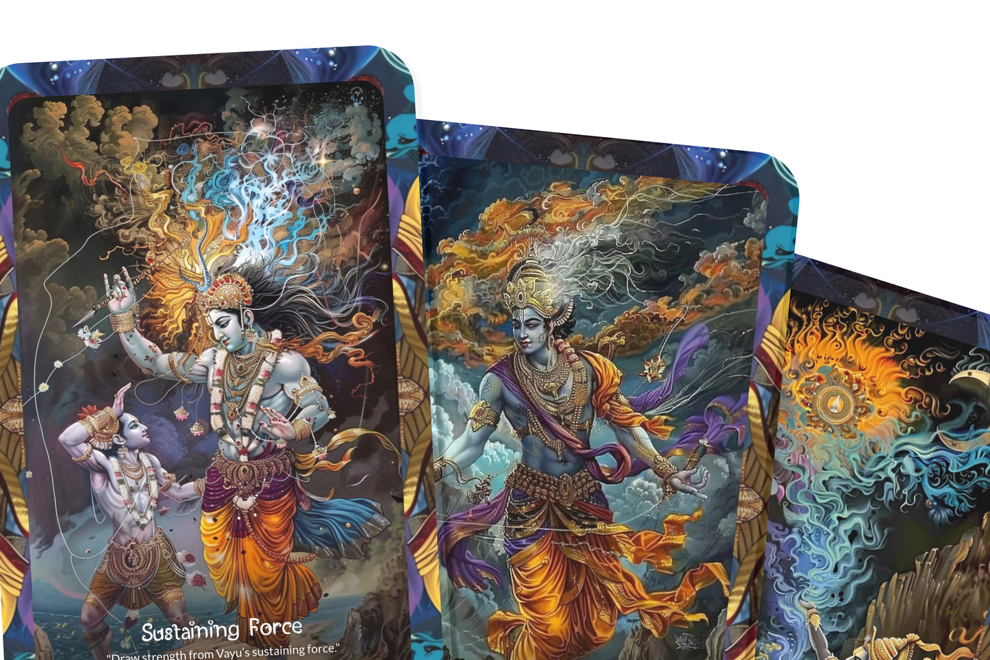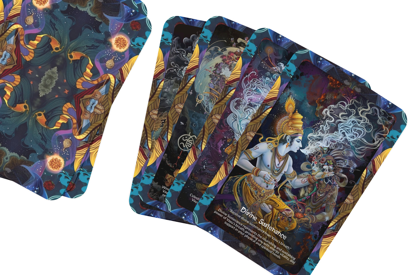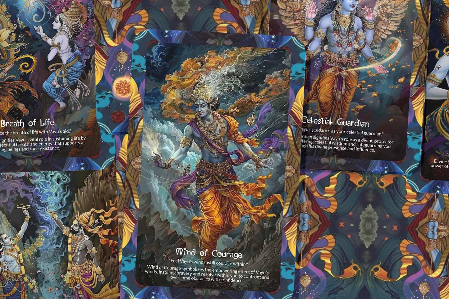 Invoke the protective energy of Vayu, the wind god, with these oracle cards. Each card offers guidance on protection, freedom, and the movement of spiritual energy, helping you navigate the winds of change with grace and resilience.
