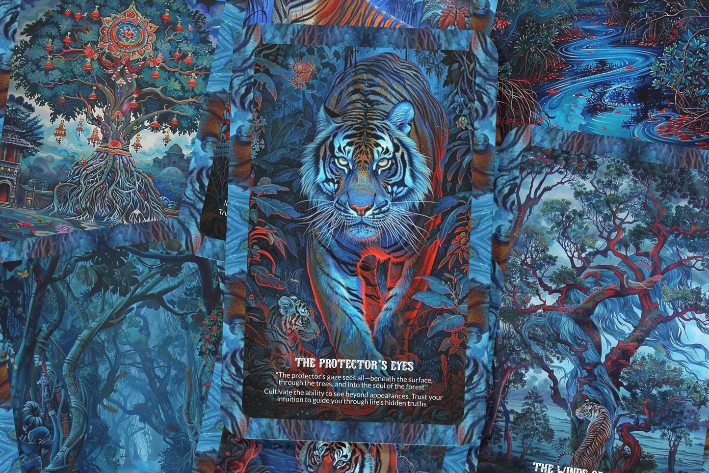 The Protector of the Sunderbans Oracle connects to the mystical forests of the Sunderbans, a UNESCO World Heritage site and the largest mangrove forest in the world. This oracle channels the protective and nurturing spirit of the region, offering guidance on safeguarding what is sacred in one’s life, whether it be relationships, projects, or personal well-being. The Sunderbans are known for their unique ecology and the fierce, protective energy of the Royal Bengal Tiger. The Protector of the Sunderbans Oracle guides individuals to take decisive action to protect their personal boundaries and values. It encourages them to be as resilient as the ecosystem of the Sunderbans, maintaining balance and harmony while guarding their most precious aspects of life from harm.
