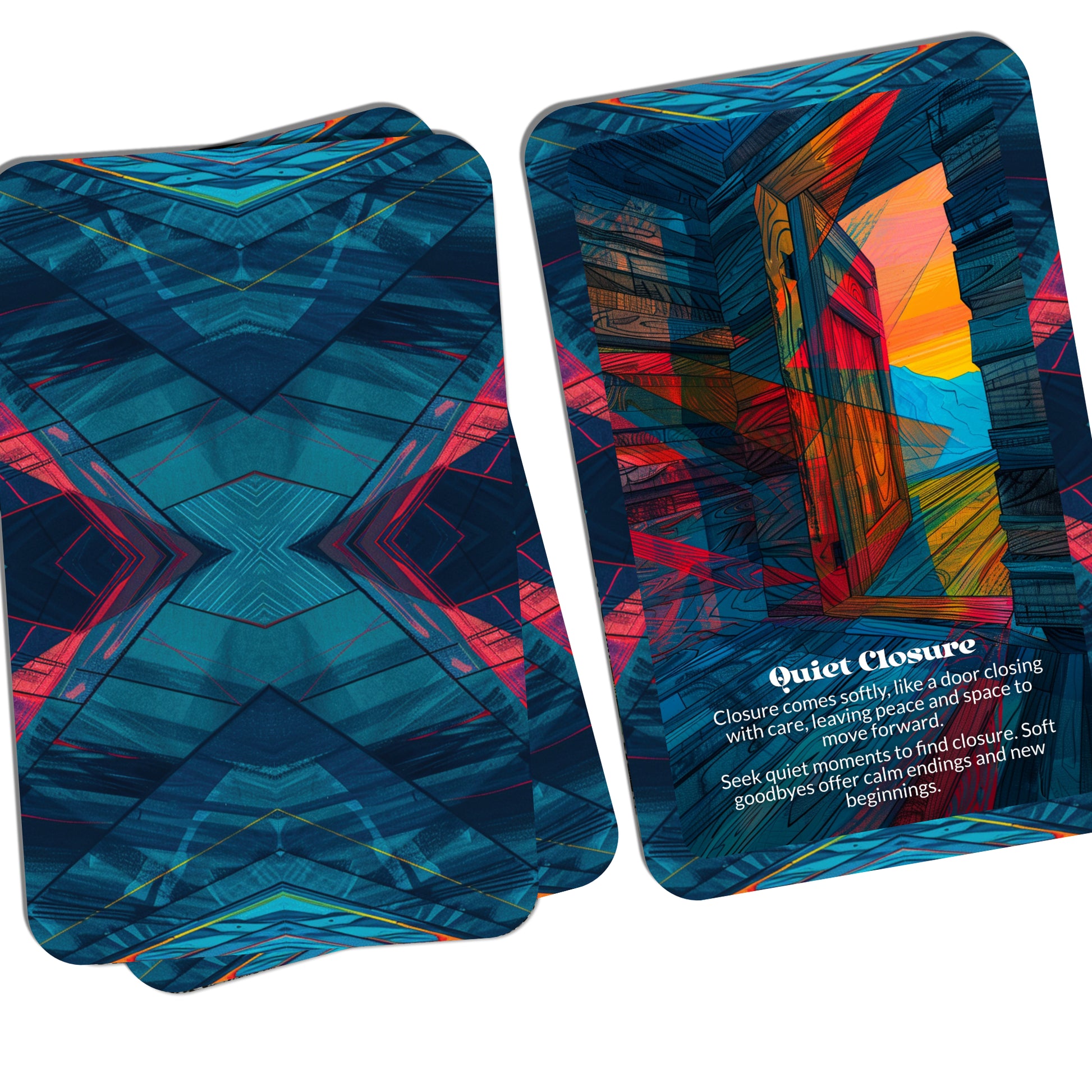 “The Soft Goodbye – Closure & Grace” - The Soft Goodbye represents the gentle nature of closure and grace. This card invites you to honor endings in your life, whether they’re relationships, chapters, or situations, with kindness and compassion. The soft goodbye is not one of harshness, but of acceptance and understanding that everything has its time. Through The Soft Goodbye, you are reminded that closure doesn’t have to be final or forceful. Instead, it can be a quiet and respectful process of releasing what no longer serves you. This card encourages you to let go with grace, knowing that each goodbye opens the door to new beginnings. Trust that endings lead to the next chapter of your journey.