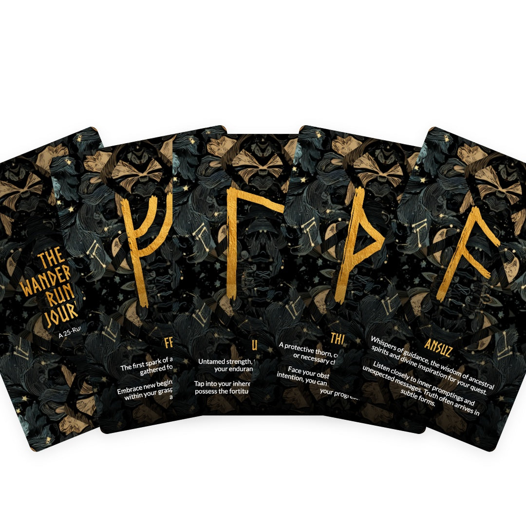 "The Wanderer's Runic Journey" is a meticulously crafted 25-card deck that invites you to delve deep into ancient runic traditions. Each card embodies symbolic wisdom, designed to illuminate the complex pathways of life and offer profound guidance to those seeking clarity. Ideal for experienced readers and spiritual explorers, this deck provides nuanced insights that support personal growth and transformation. Engage with these powerful archetypes to navigate challenges, uncover hidden layers of meaning, and enrich your spiritual practice with time-honored knowledge. This deck is a valuable tool for anyone committed to a thoughtful, introspective quest.