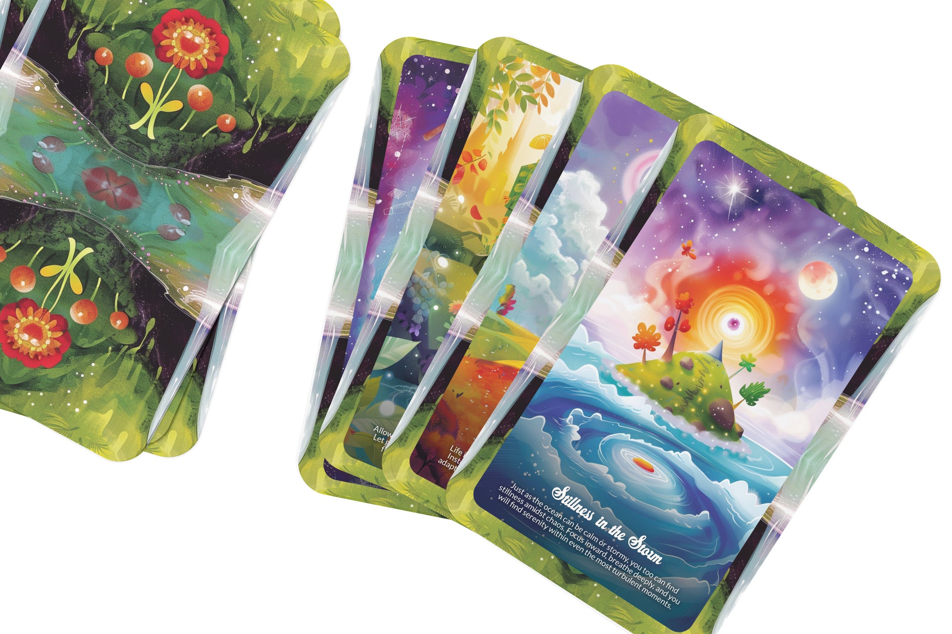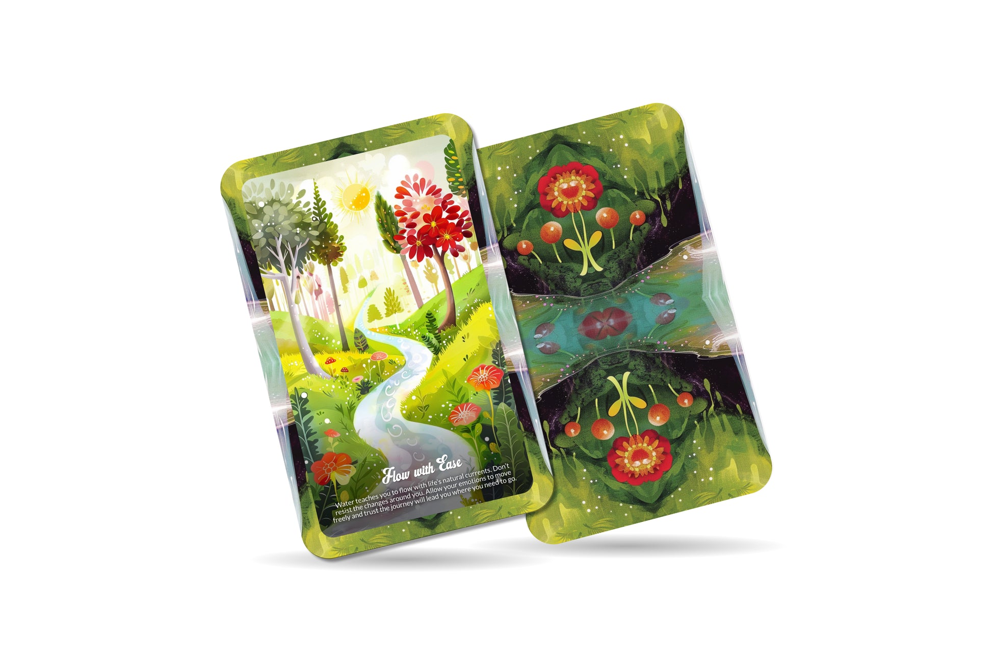 The Water’s Embrace Oracle connects you to the vast emotional depths within and the fluid nature of your life’s journey. Water, a symbol of cleansing, healing, and flow, guides you through the ebbs and flows of your emotions. The cards encourage you to dive deep into your subconscious, face your emotional truths, and trust the process of transformation. Water’s message is one of surrendering control, allowing the currents of life to guide you toward healing and renewal. These cards help you release stagnant energy, embrace emotional clarity, and learn to flow with life’s changes.