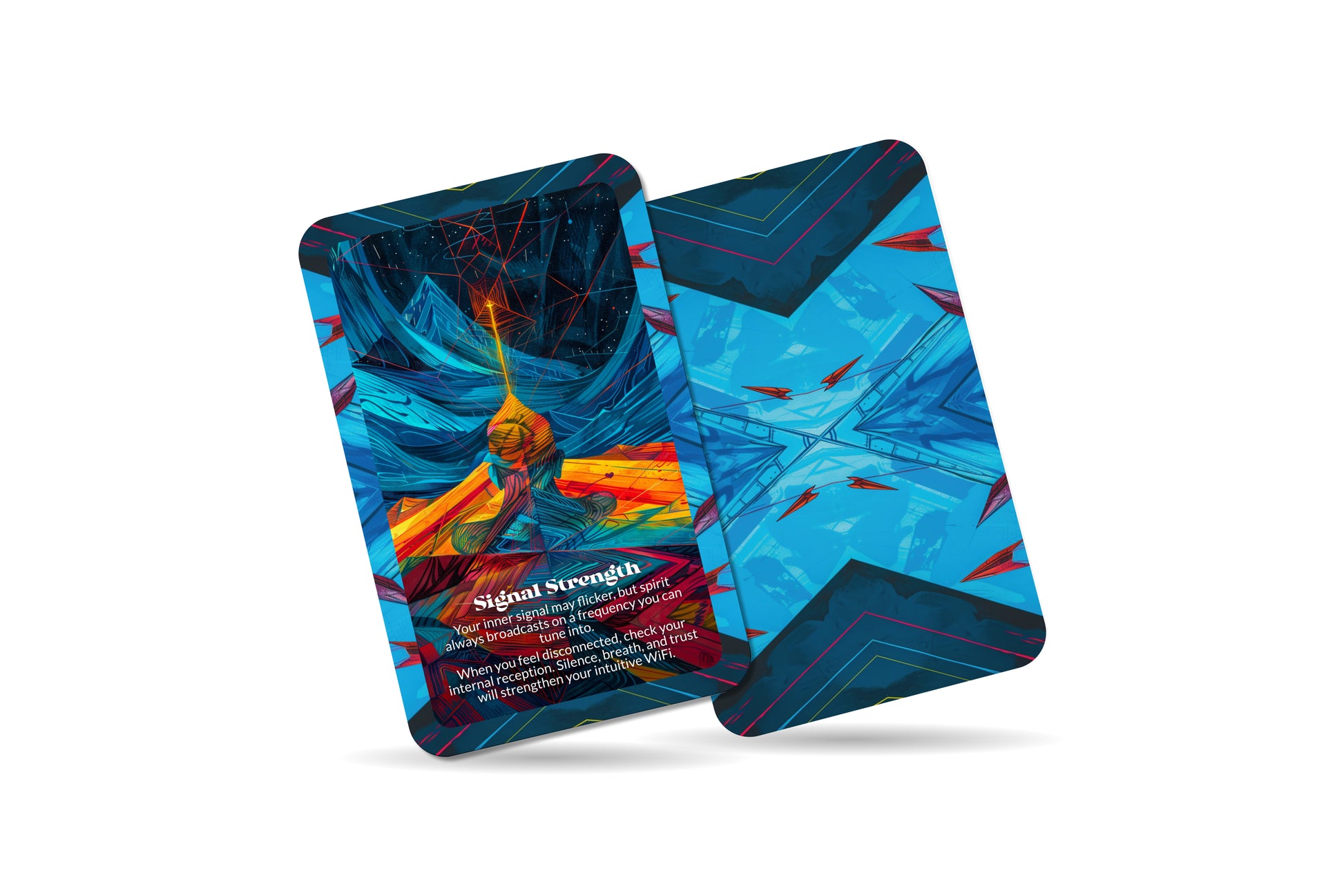“WiFi & Wonder – Mindful Connectivity” - WiFi & Wonder invites you to find balance in your digital connections, encouraging you to stay mindful of how technology impacts your energy. While connectivity is essential in the modern world, this card reminds you to pause and check in with your emotional and spiritual needs. The wonders of the world are not only found online but also in the spaces between interactions. This card encourages you to reconnect with the magic of presence, balancing your online interactions with moments of stillness and introspection. WiFi & Wonder asks you to engage with technology consciously, using it as a tool for connection, but always ensuring you nurture your own sense of wonder and wonderment offline as well.