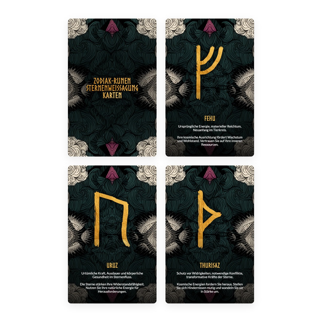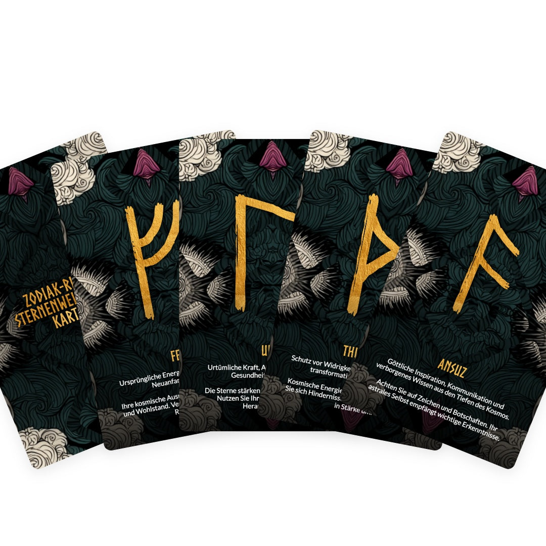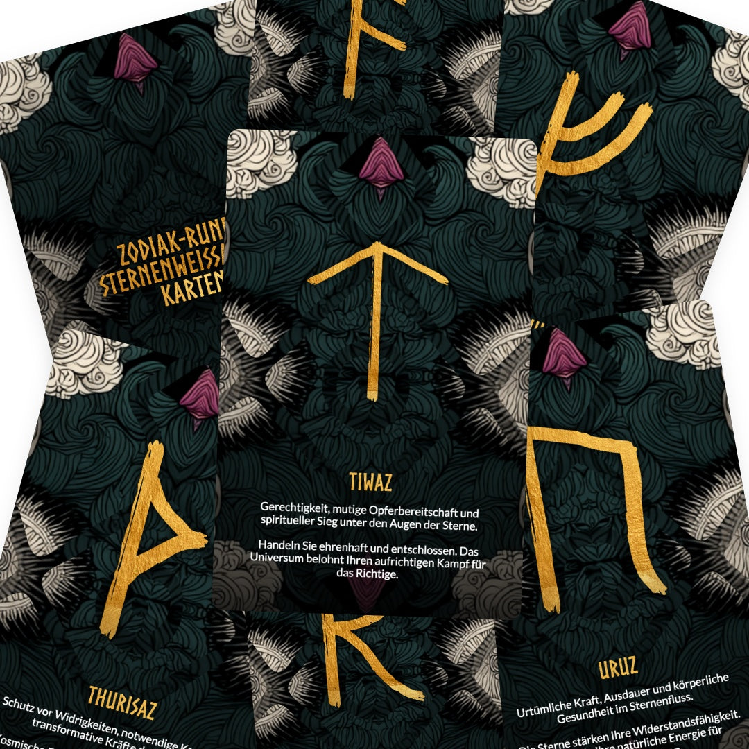 Zodiak-Runen: Sternenweissagung Karten ist ein außergewöhnliches 25-Karten-Deck, das die uralte Symbolik der Runen mit der astrologischen Weisheit der zwölf Sternzeichen verschmelzt. Dieses Deck ermöglicht eine präzise Verbindung zwischen individuellen Lebenswegen und den kosmischen Kräften, die das Schicksal formen. Jede Karte bietet tiefgehende Einsichten in persönliche Herausforderungen, Potenziale und die Einflüsse himmlischer Energien.